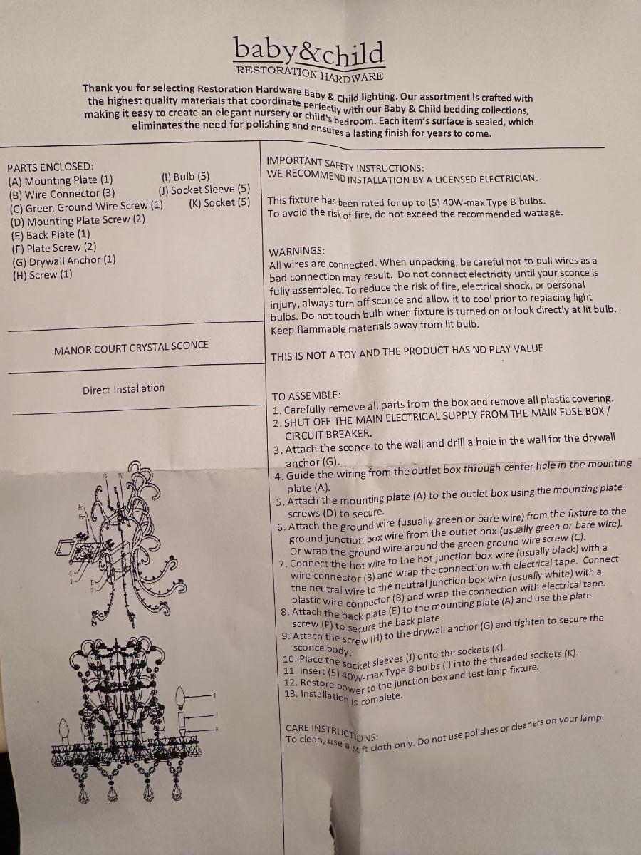 Restoration Hardware Baby & Child Crystal Wall Chandelier
