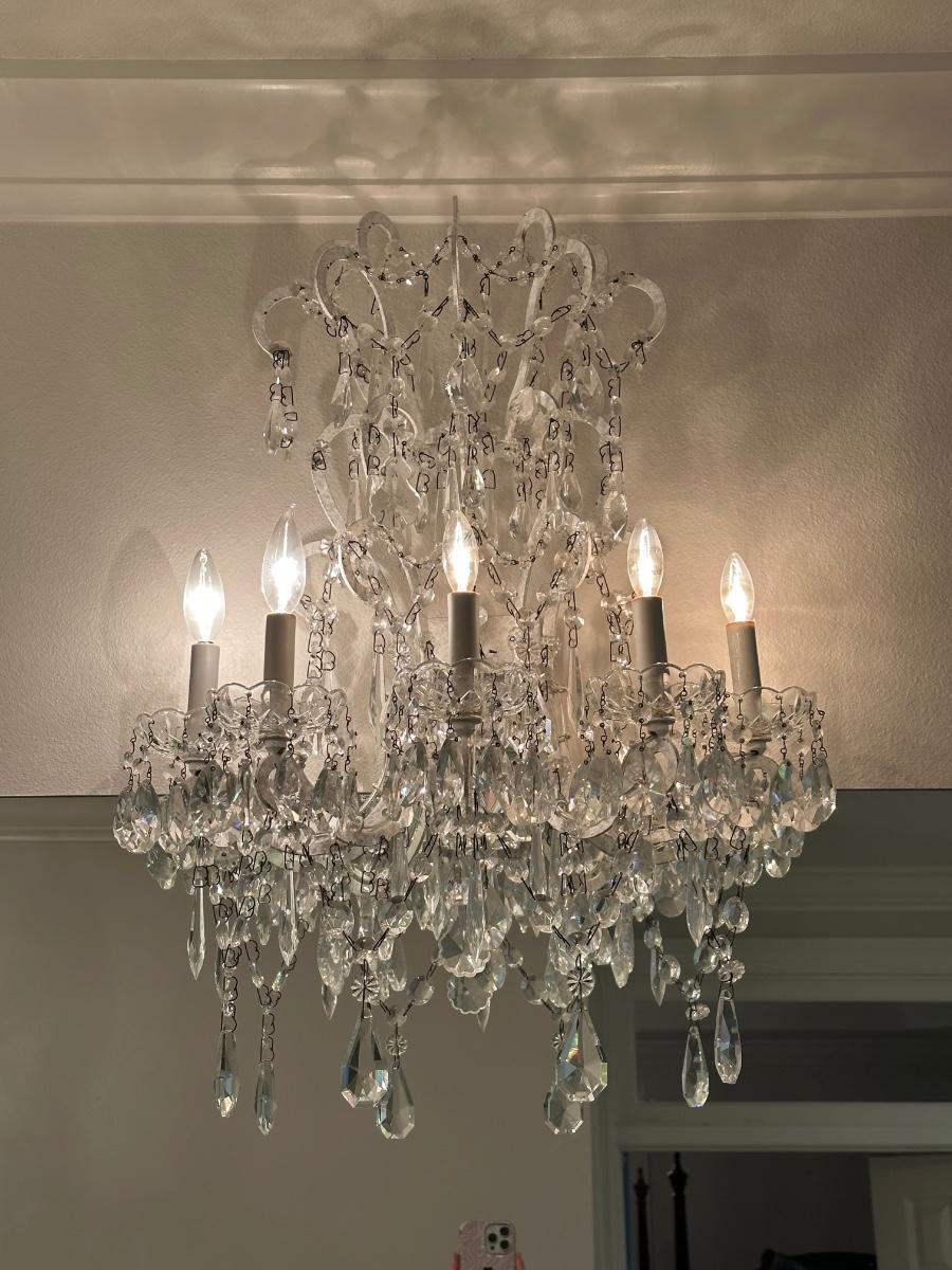 The chandelier will be taken down and ready for transport, but please note we won’t have proper packaging materials, so we recommend bringing padding or protective wrapping.