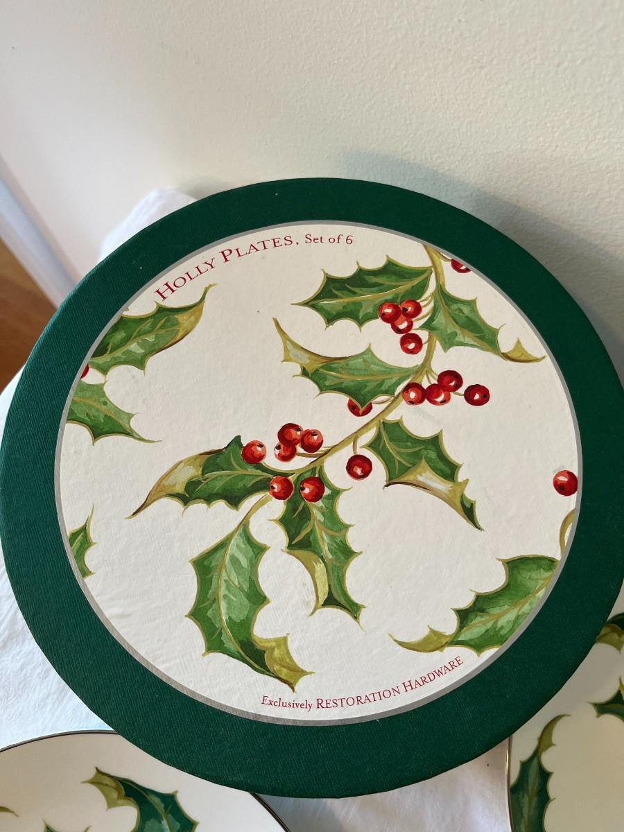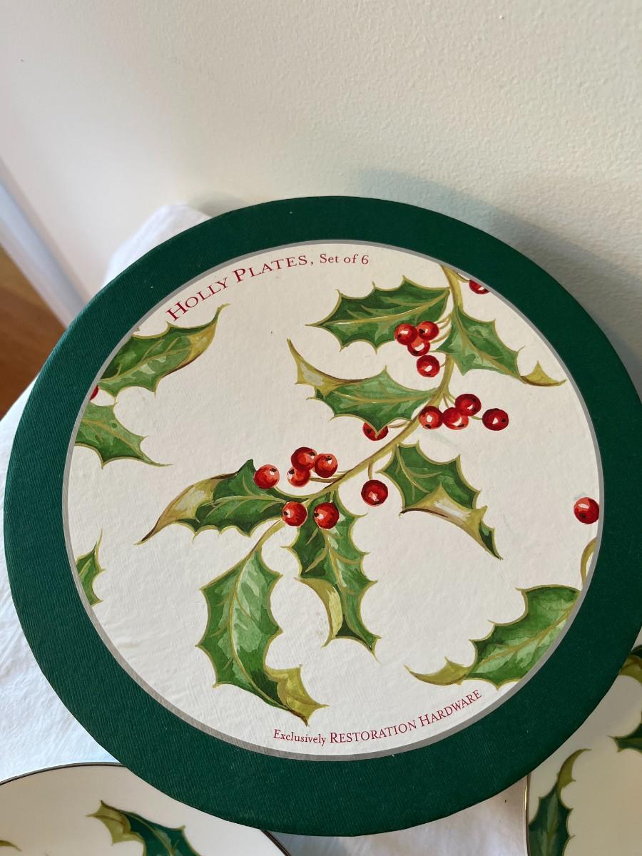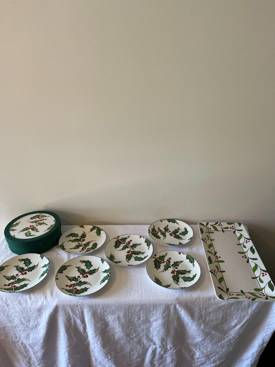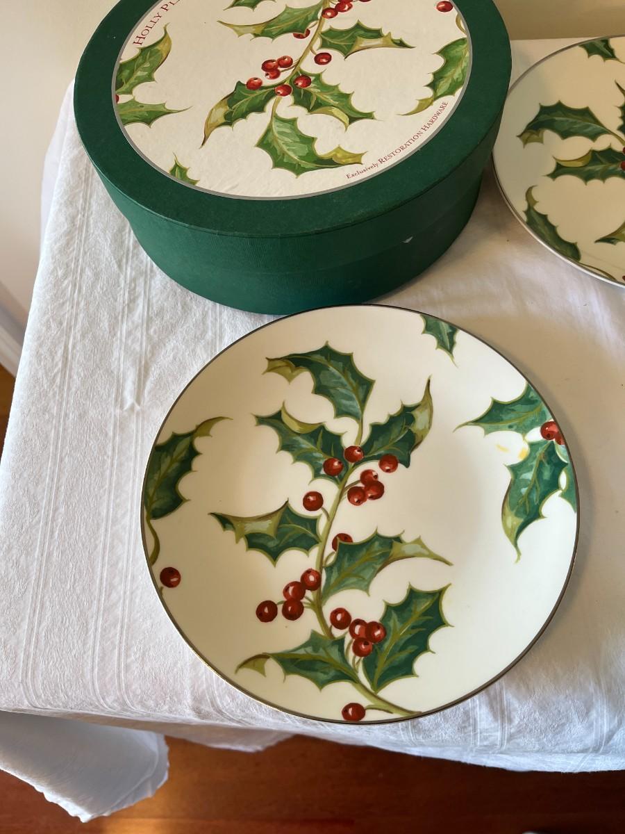 Restoration Hardware Holly Berry Dessert Plates from their 2001 Christmas Collection. and Plastic Serving Tray