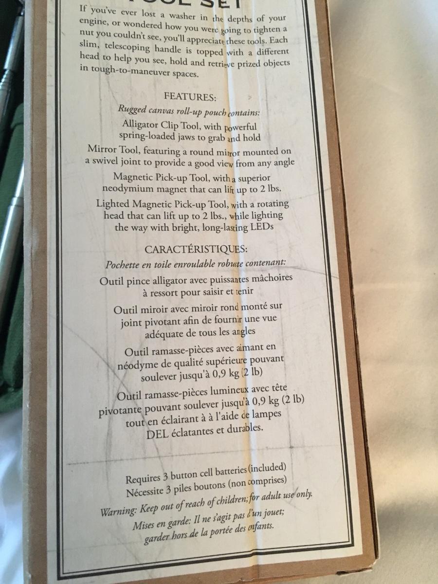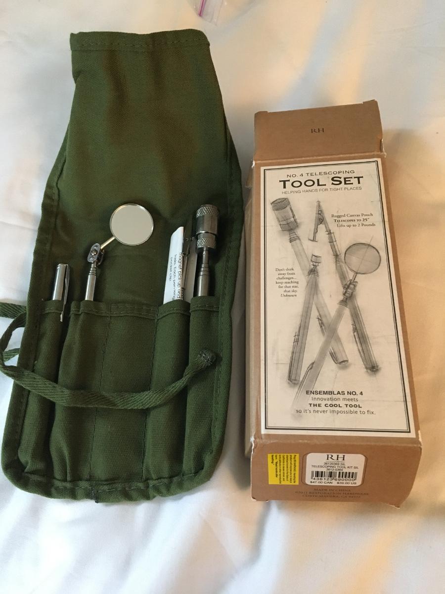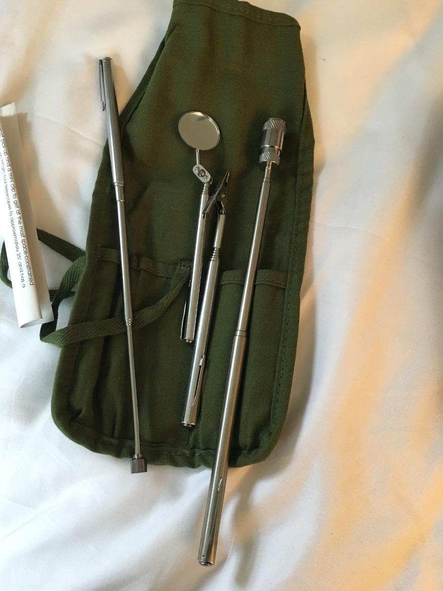 Set of 4 telescoping tools in canvas carrying case. Description of each tool in photo. One will need batteries replaced.
