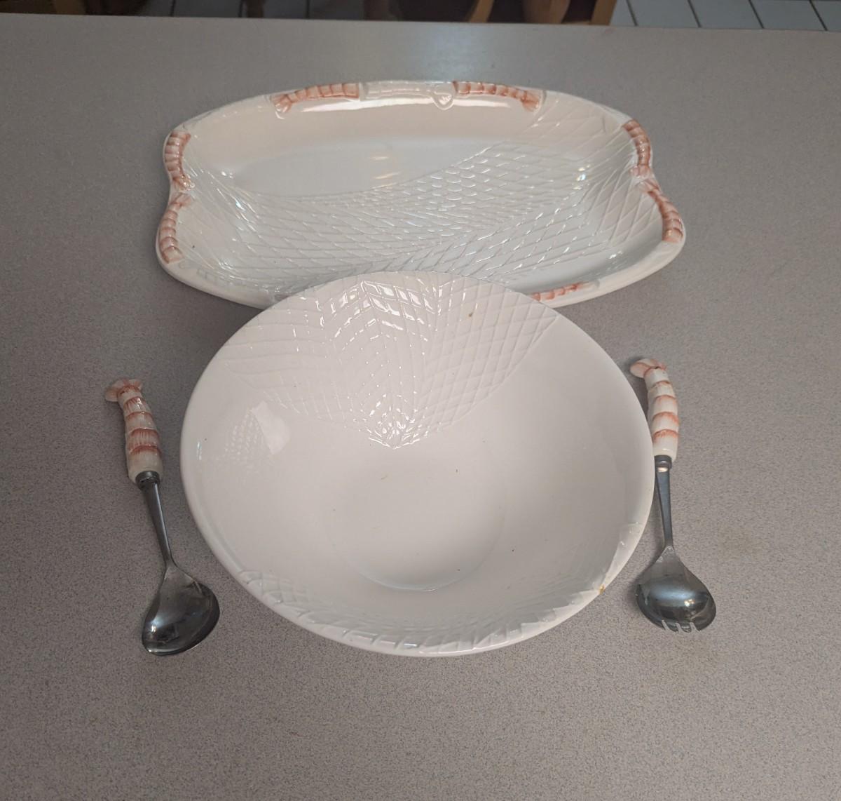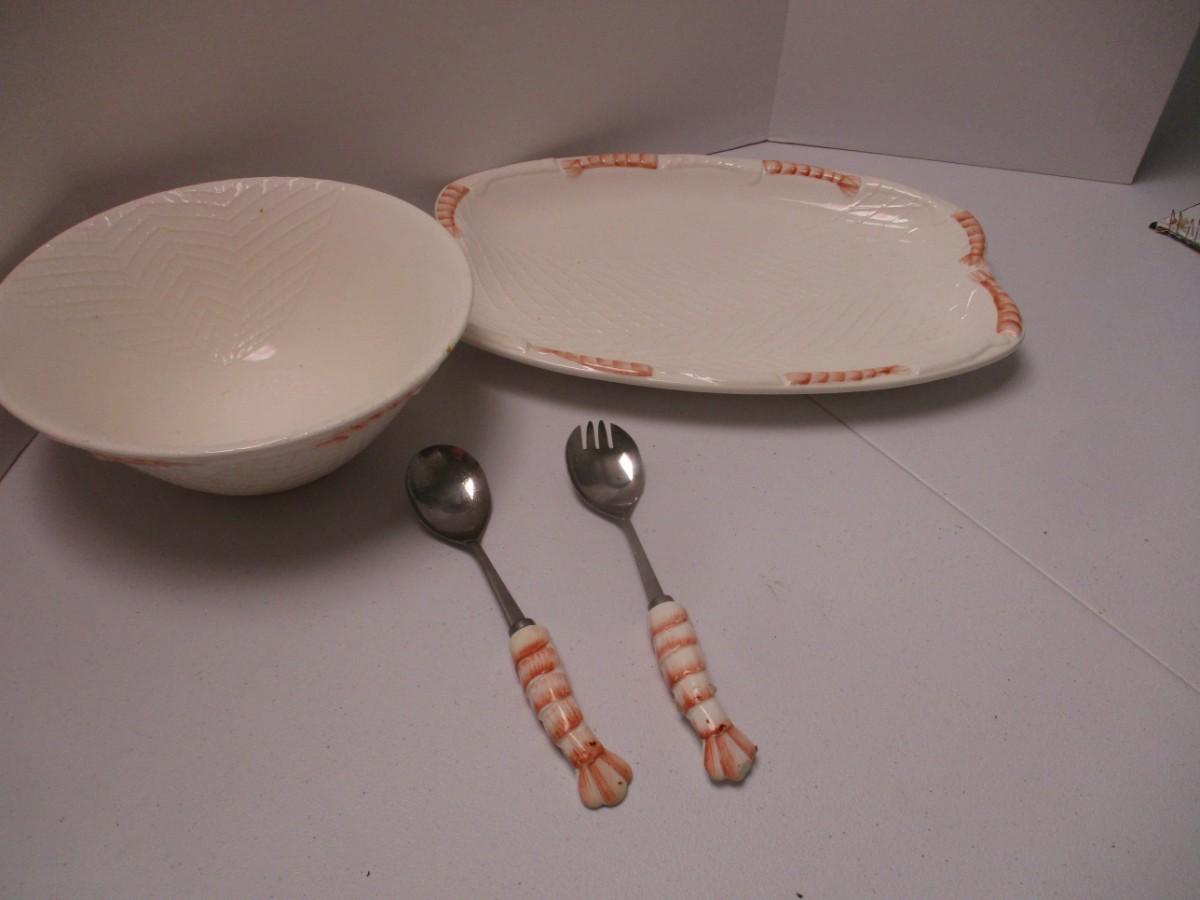 1986 Sea Fare Shrimp Porcelain Serving Dishes (K)