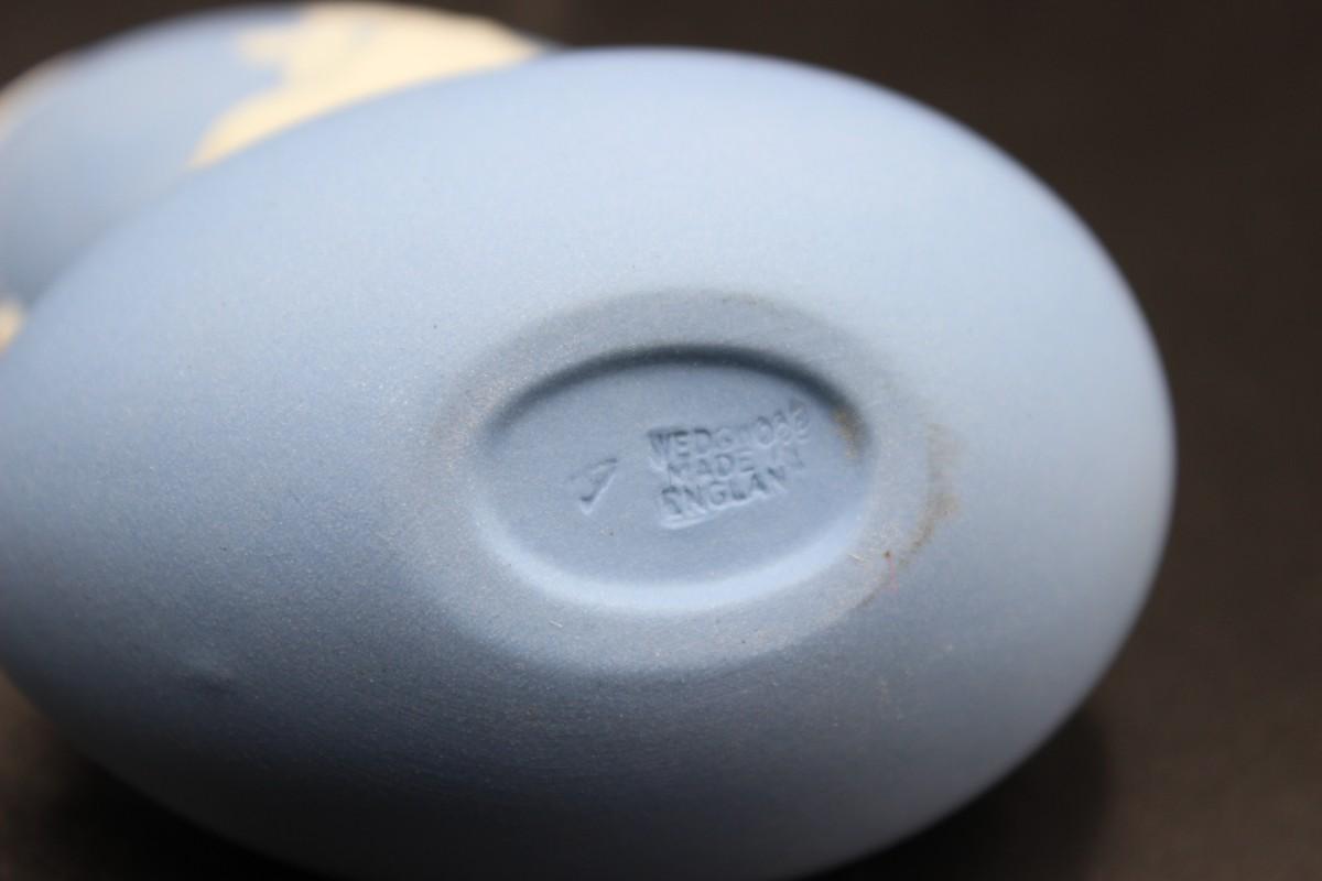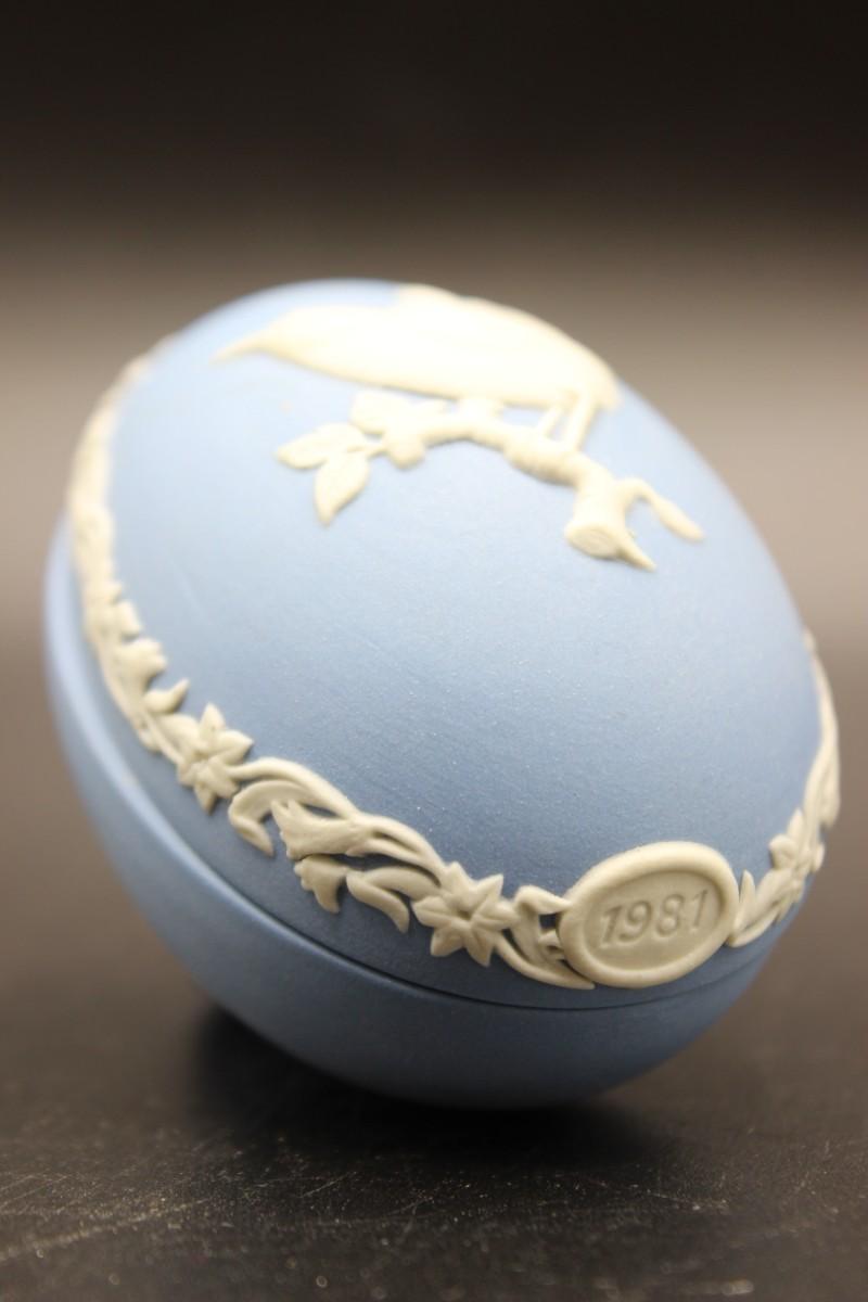 Wedgwood Blue Jasperware Easter Egg for 1981, there are no cracks or chips to the piece and is in good vintage condition. Comes with original packaging and box, check pictures for more details. The egg is about 3 inches wide.
