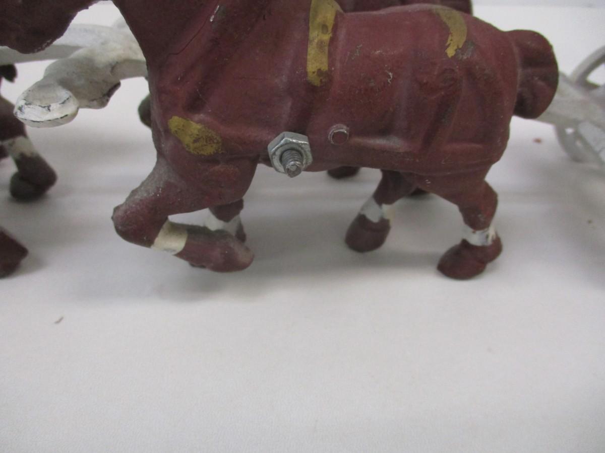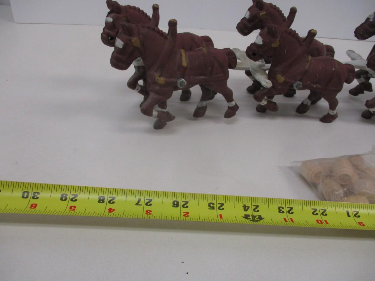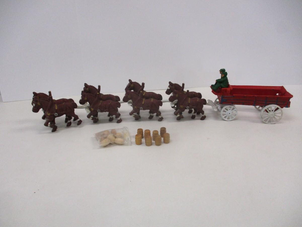 Vintage Cast Iron Budweiser Clydesdale Horses Wagon 8 In Hand With Barrels