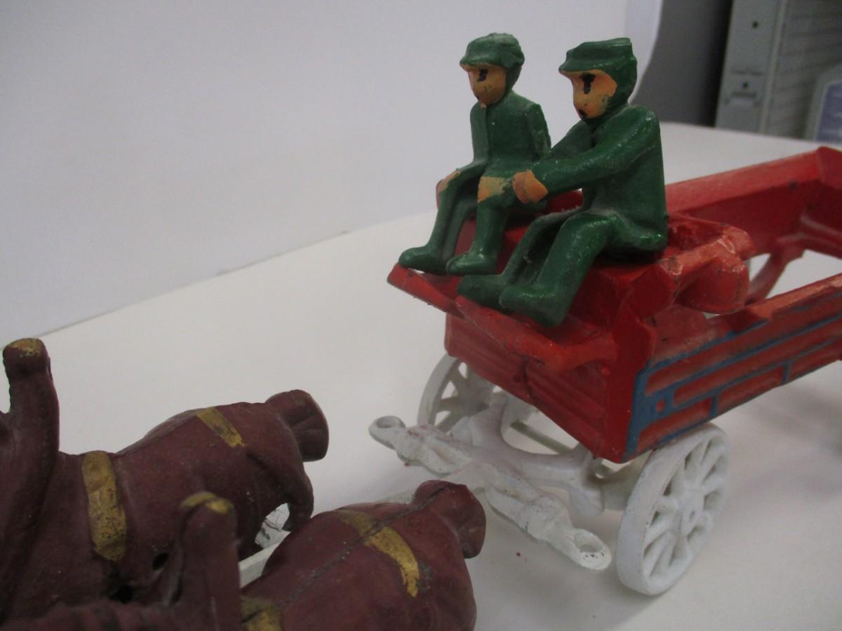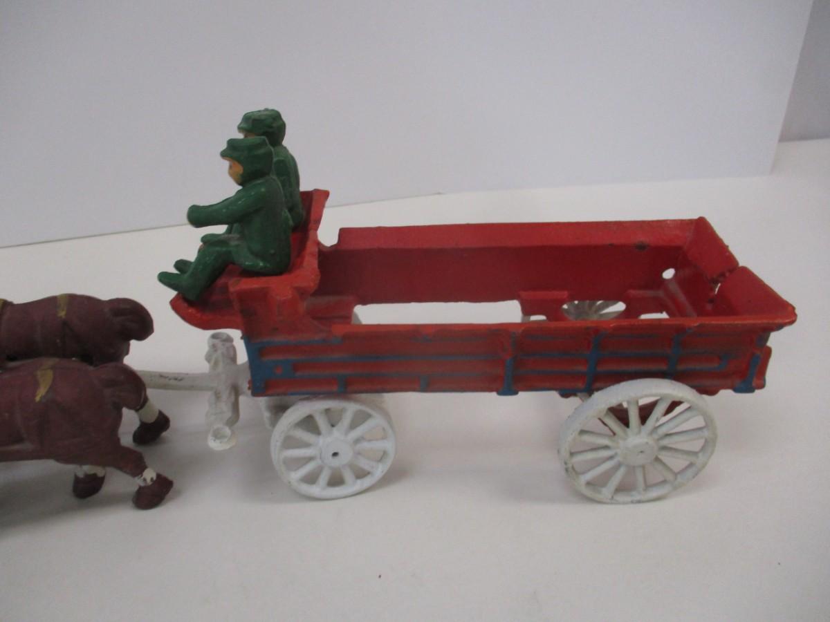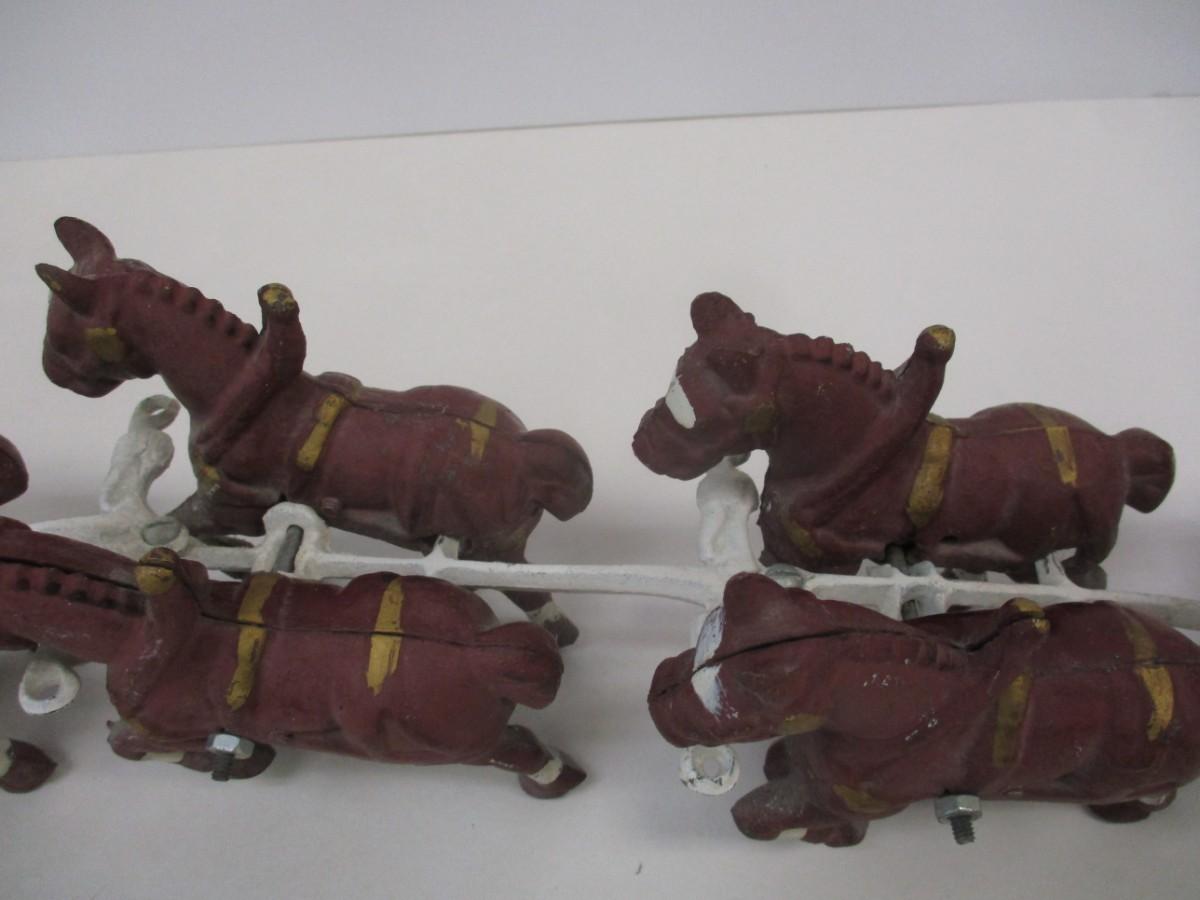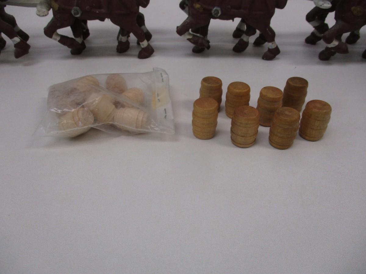 Vintage Cast Iron Budweiser Clydesdale Horses Wagon 8 In Hand With Barrels