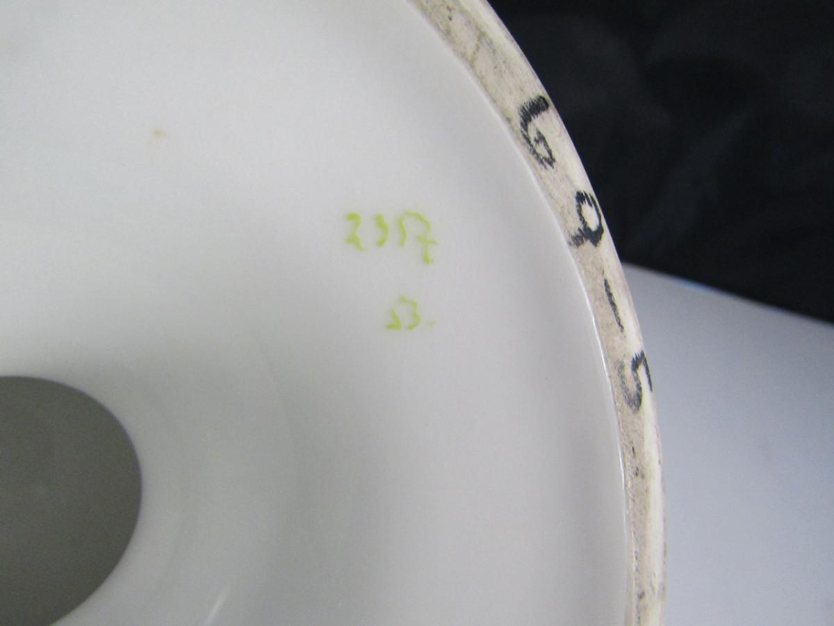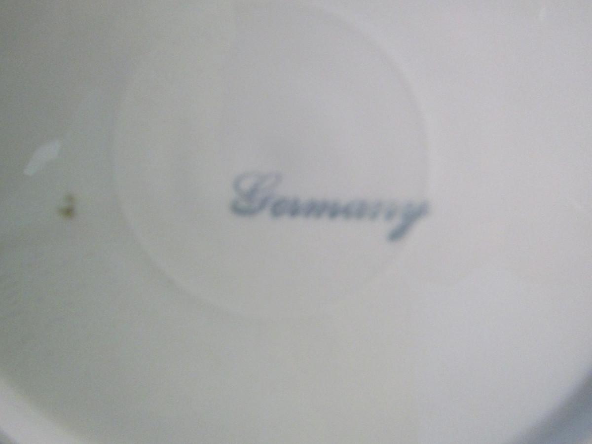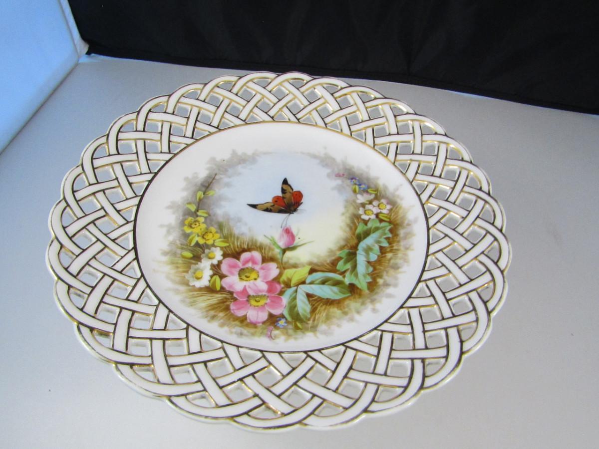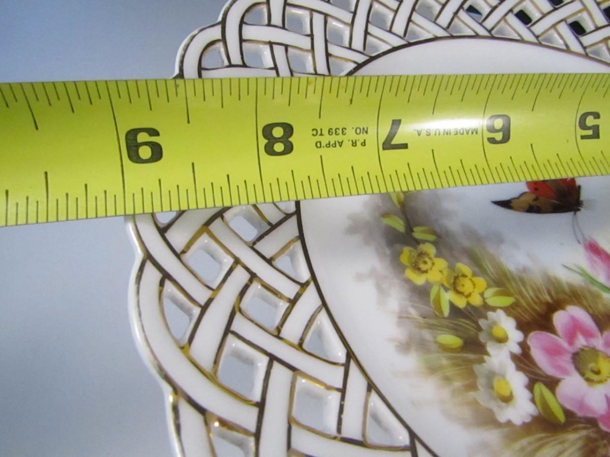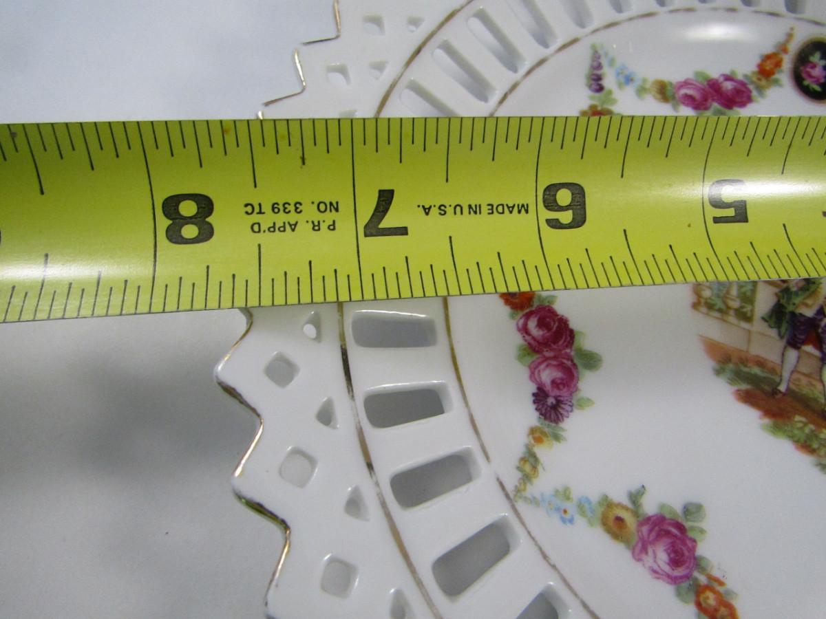Reticulated Plate and Pedestal Pastry/Candy Stand. Plate is marked Germany and is approx 7 3/4" in diameter. Stand is approx 9" in diameter, 3 3/4" tall and has a faded, undecipherable maker's mark.