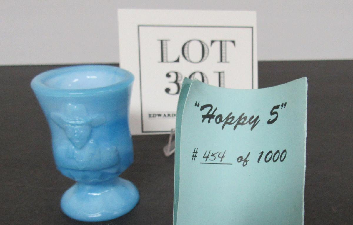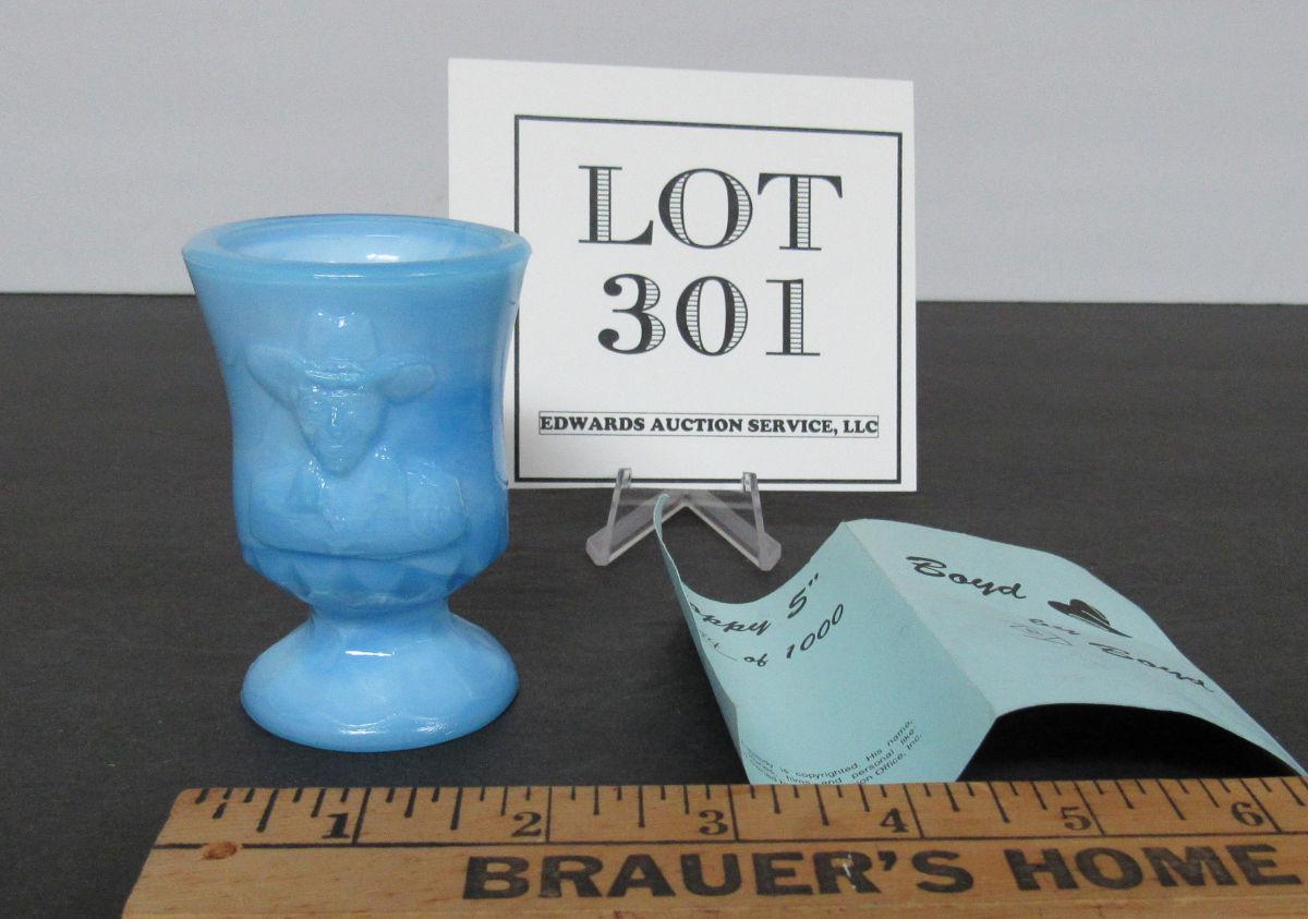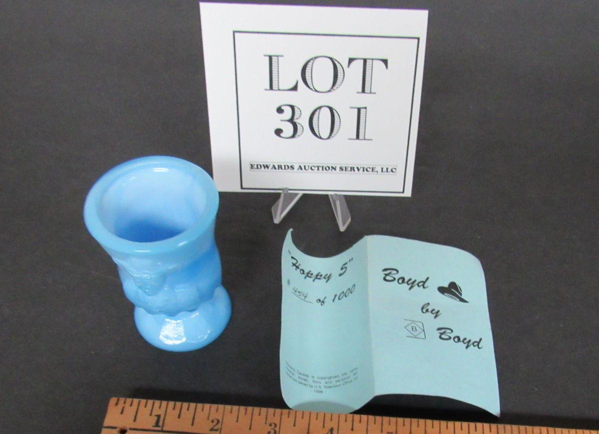 Retired Boyd Glass Limited Ed Hoppy Toothpick Holder #454/1000 Light Blue Slag