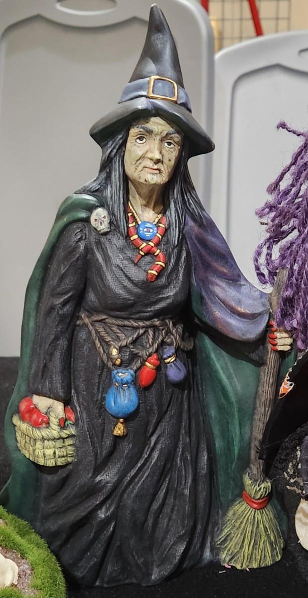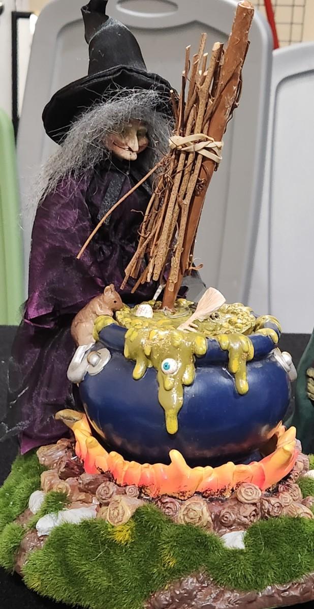 Retro 12" Witch Couldron Animated Singing Monster Mash Working Vintage Peaktop & Plushie Lanky leg Witch plus Ceramic Old Witch