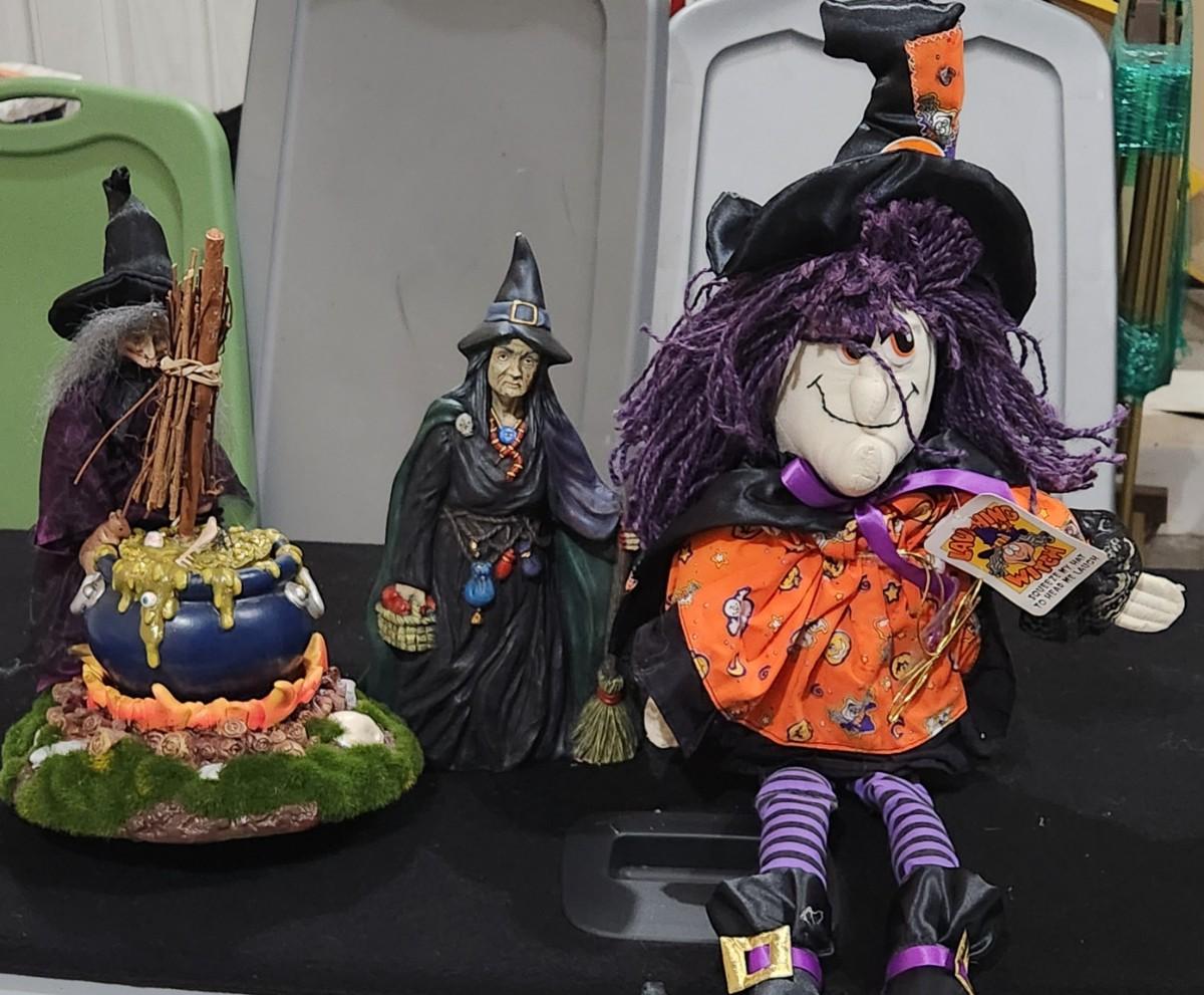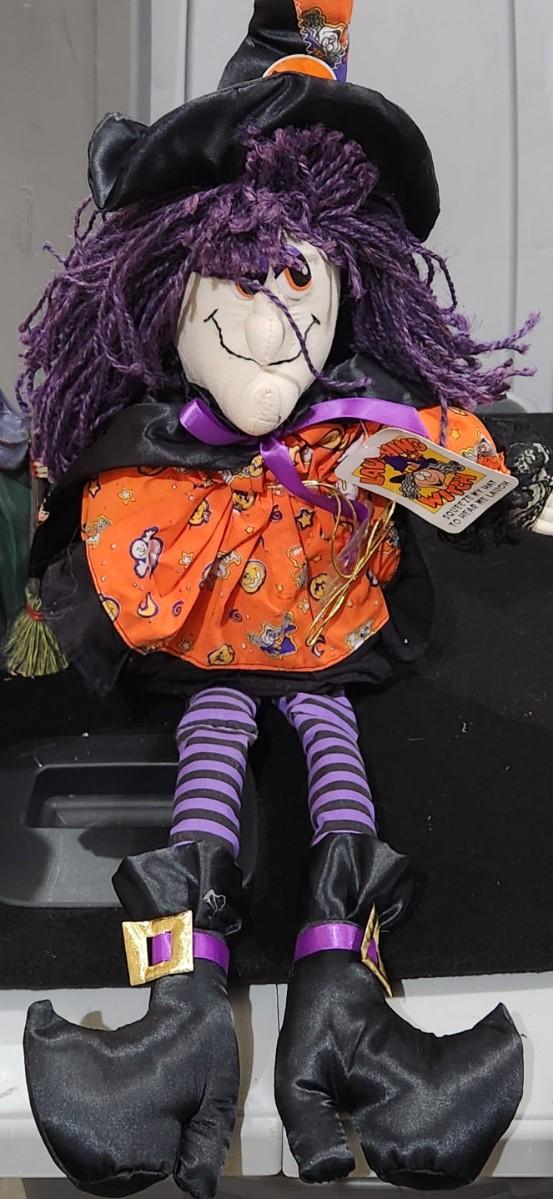 Retro 12" Witch Couldron Animated Singing Monster Mash Working Vintage Peaktop & Plushie Lanky leg Witch plus Ceramic Old Witch Halloween