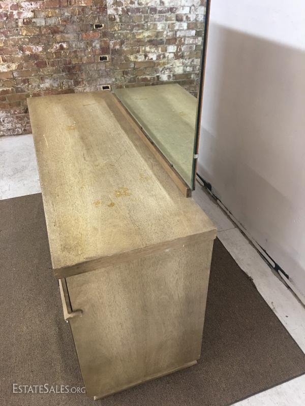 Vintage 1950's dresser with mirror 7-drawerin good condition with some wear to finish. Mirror is not chipped or cracked perfect. Measures 57" by 19", 32" tall.