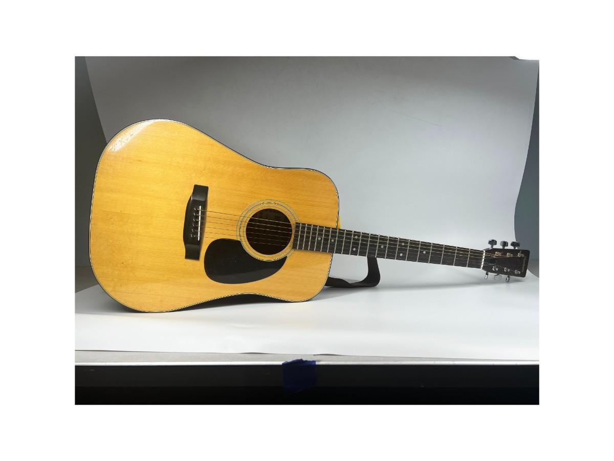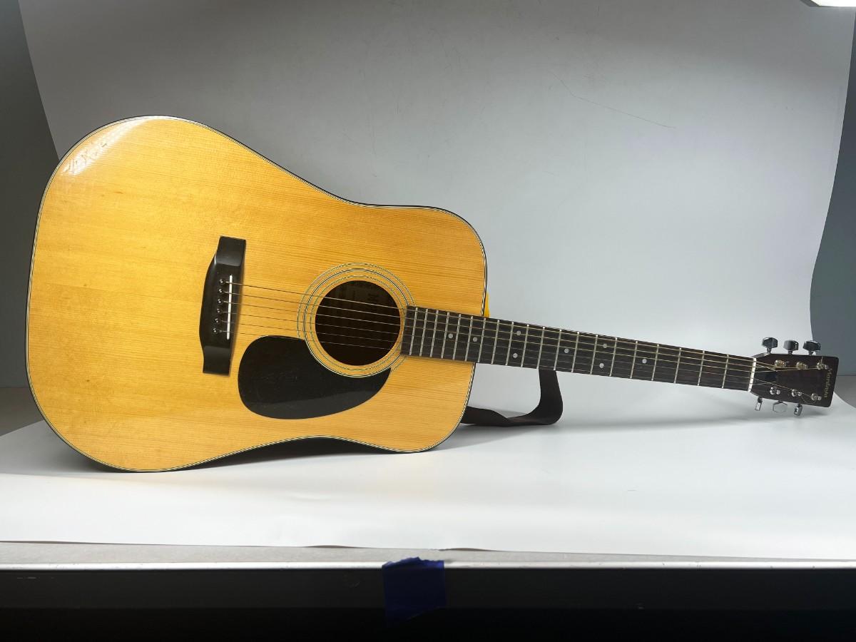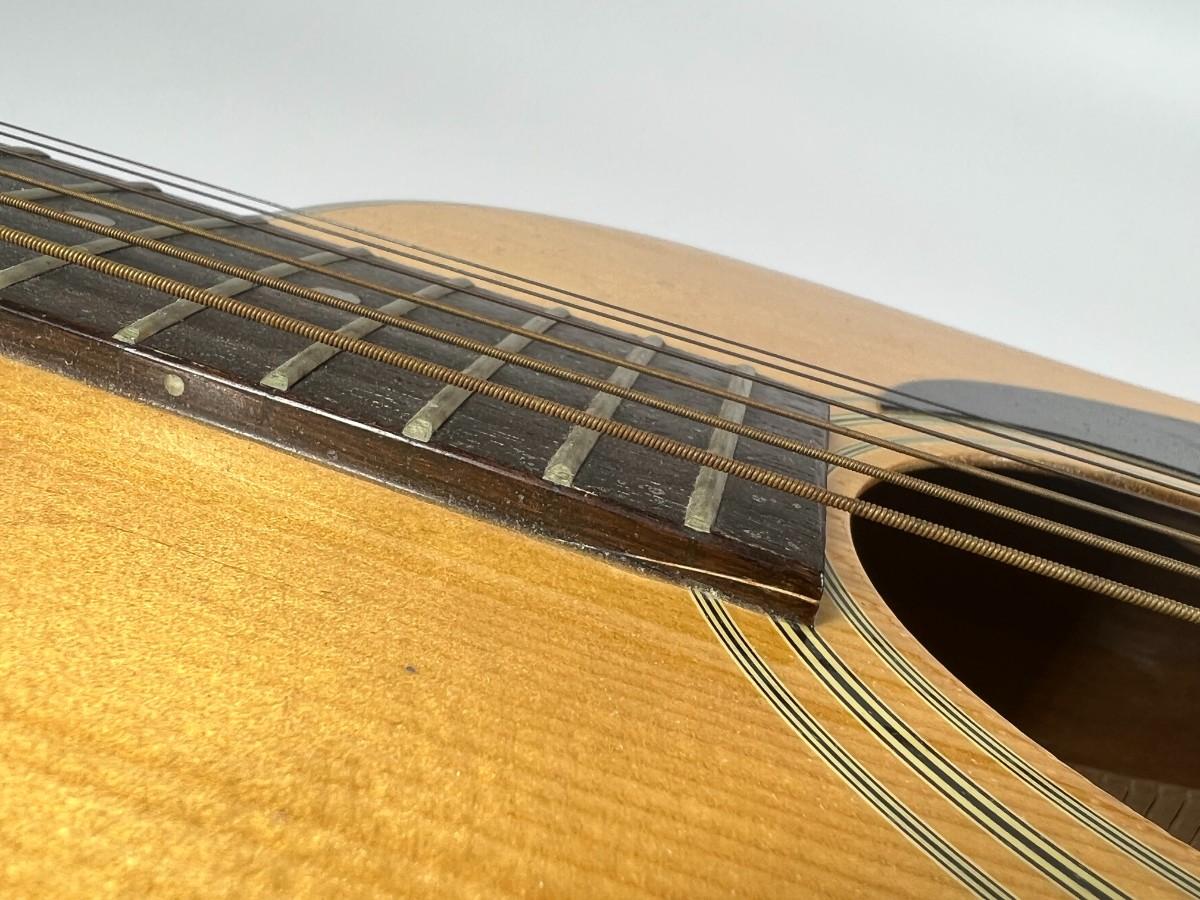 There is a light crack on the neck and a crack on the backside of the guitar, there is also some light wear but no other significant damage to the guitar. The action is a little high, but plays well. The case has some wear but no significant damage. Check pictures for more details and for sizing