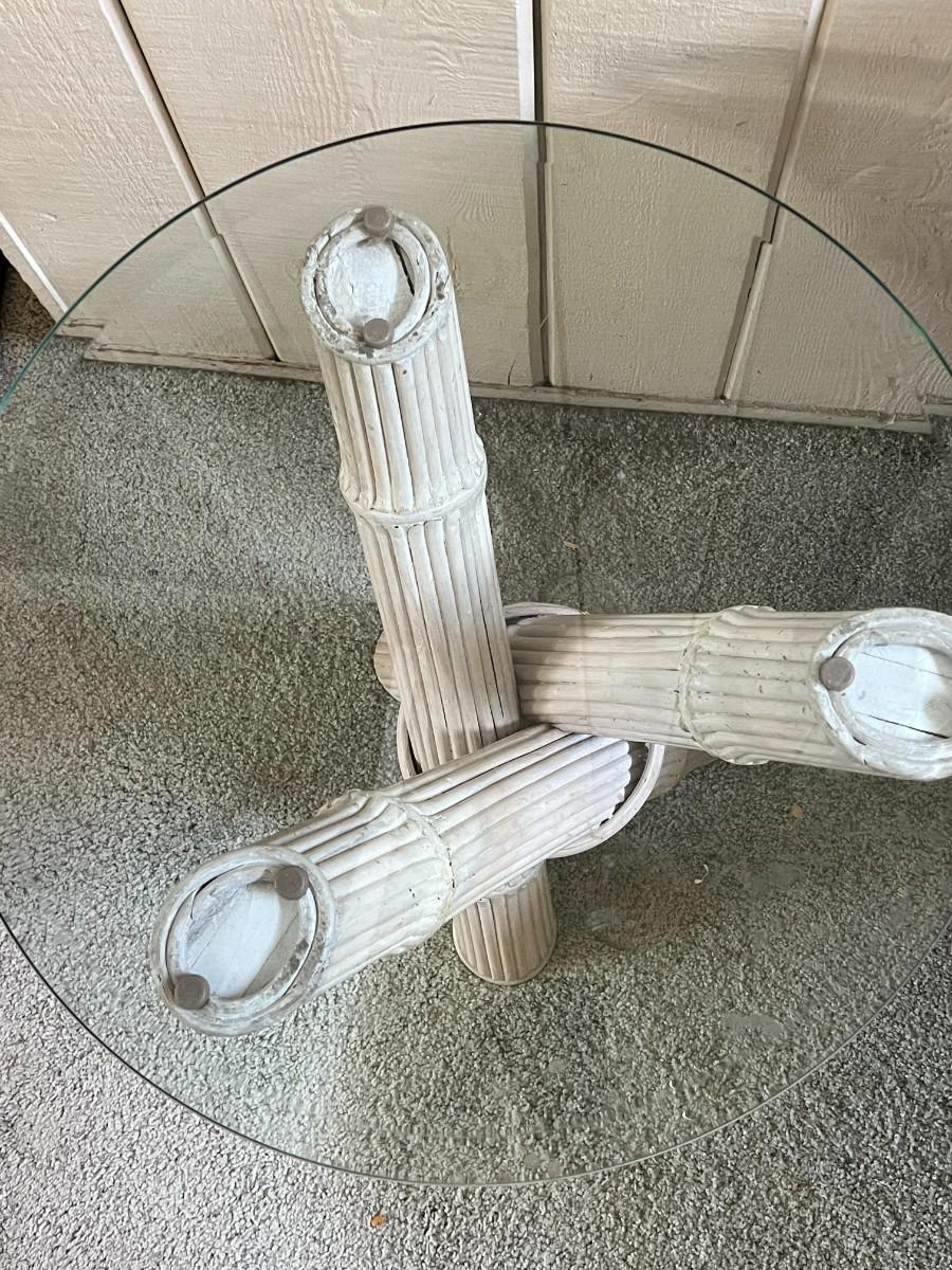 Retro 1980s White Painted Faux Bamboo Tripod Base Glass Round Side Table