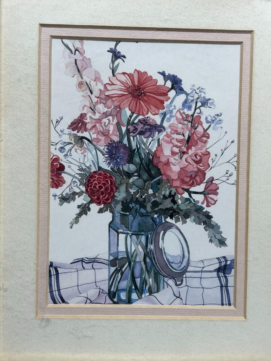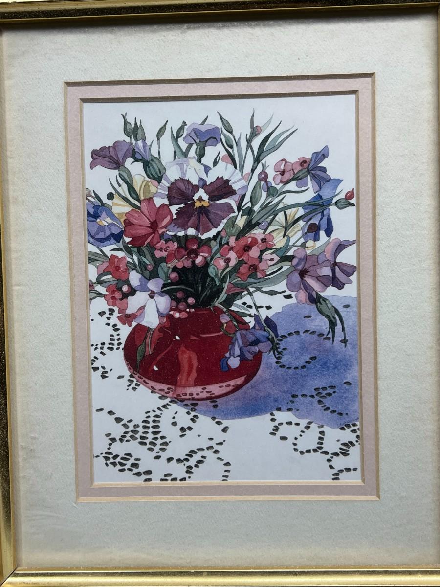 Retro 1989 Pansies and Blossoms Paintings by Shirley Chapman Framed Floral Wall Art