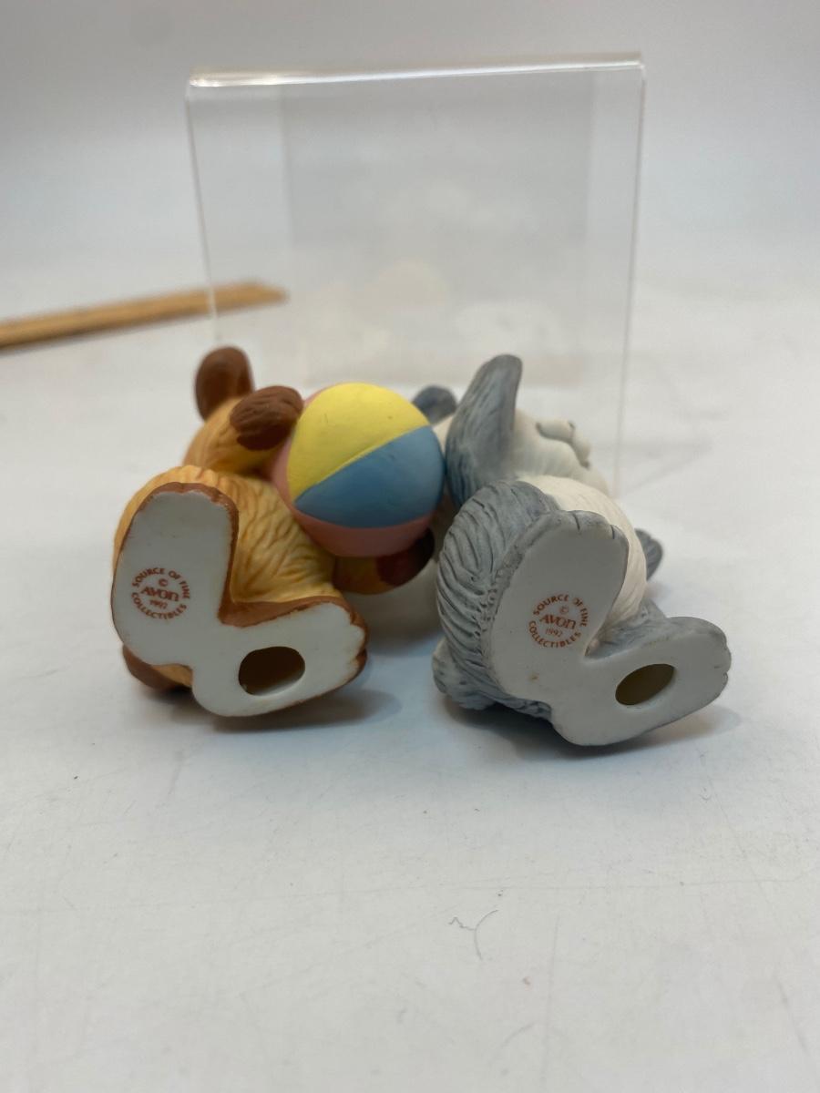 Retro 1992 AVON Porcelain Teddy Bear Dog Figurines. Super cute. About 2.5" size.