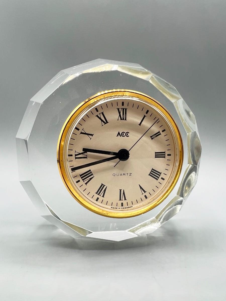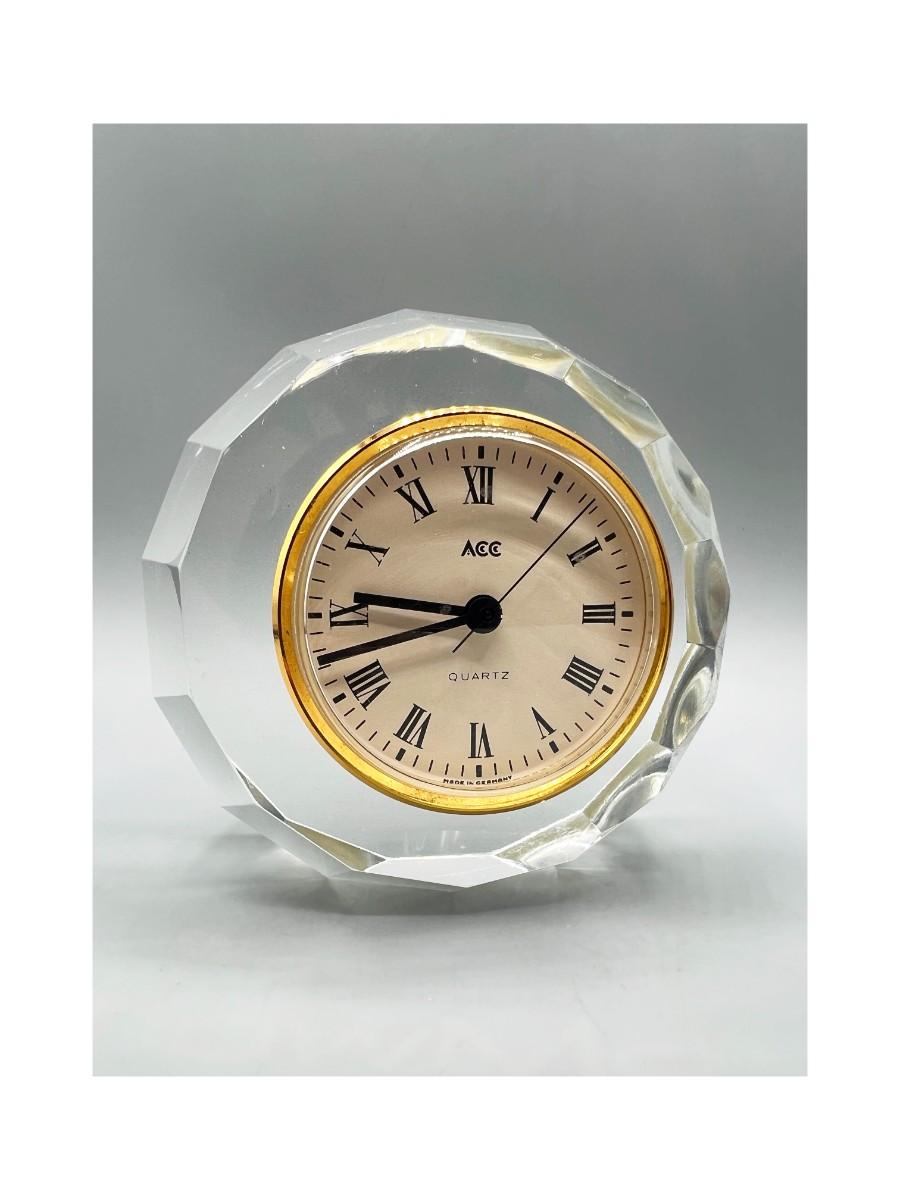 Retro ACC Quartz German Rounded Shard Crystal Glass Analog Clock