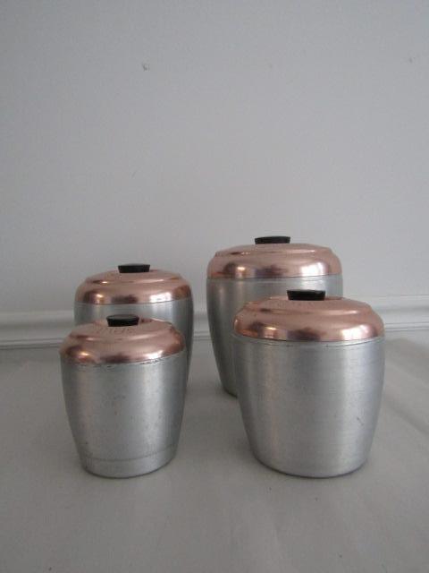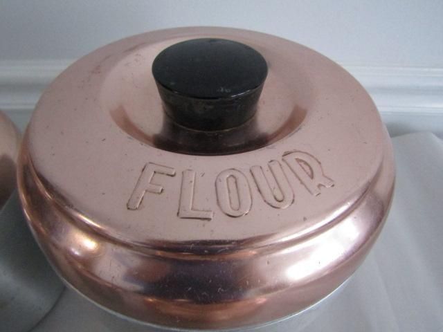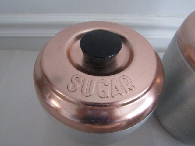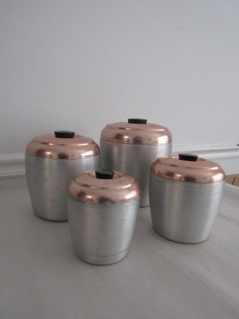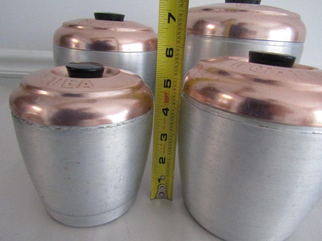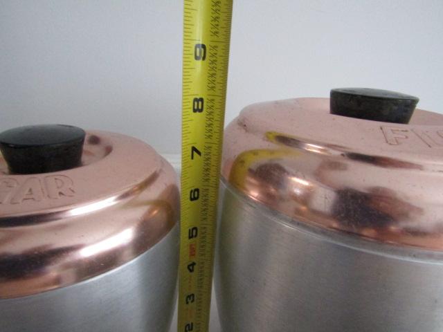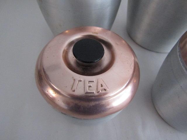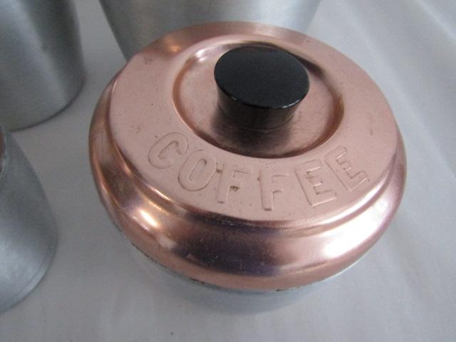 Retro Aluminum and Copper Canister Set (Tea, Coffee, Sugar, and Flour)