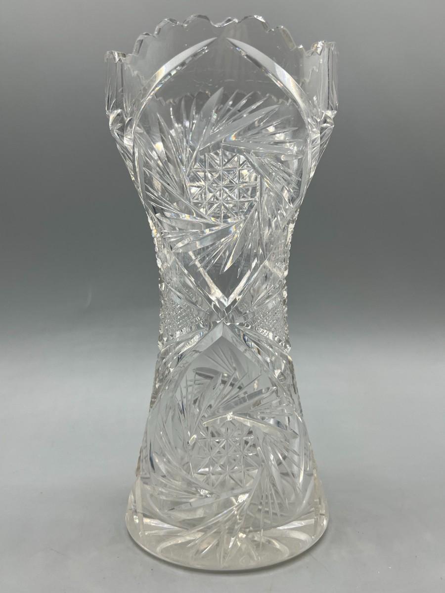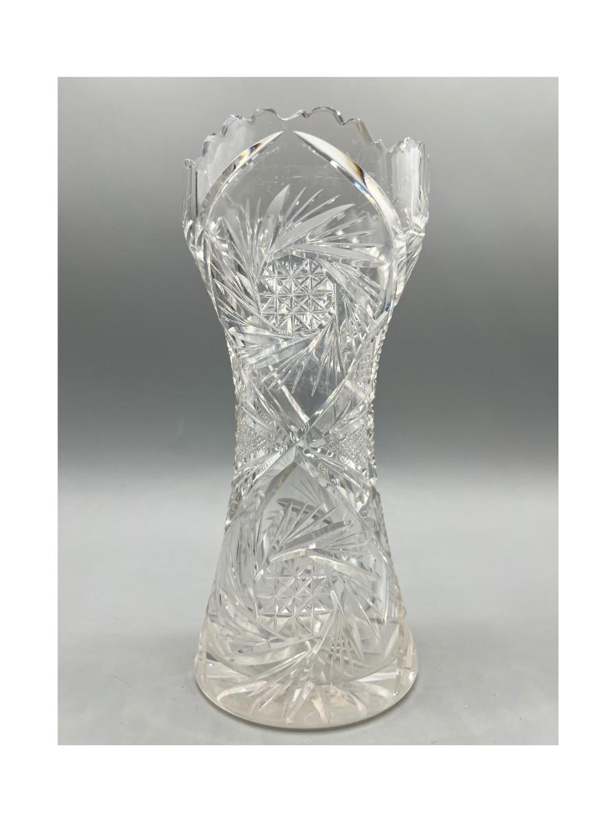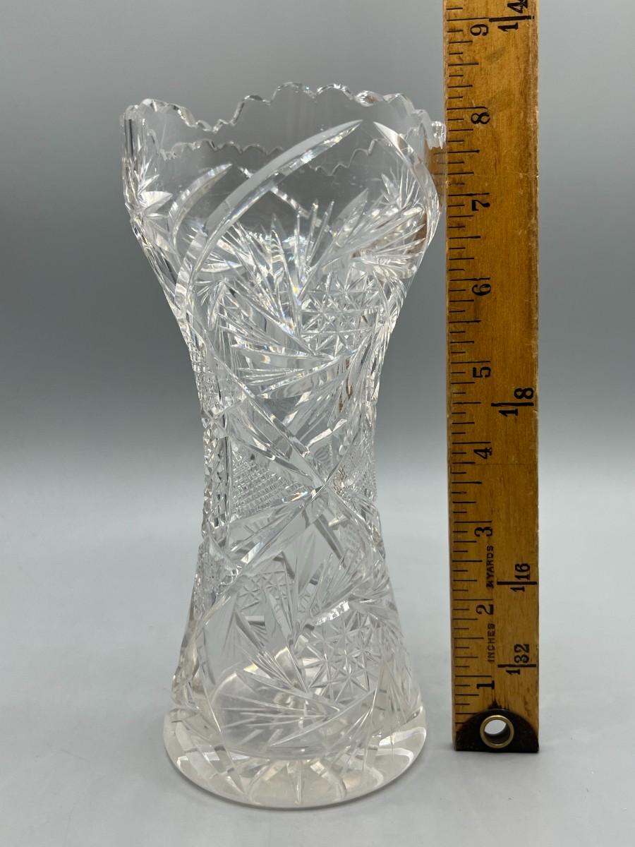 Retro American Brilliant Cut Crystal Glass Corset Hourglass Flower Vase