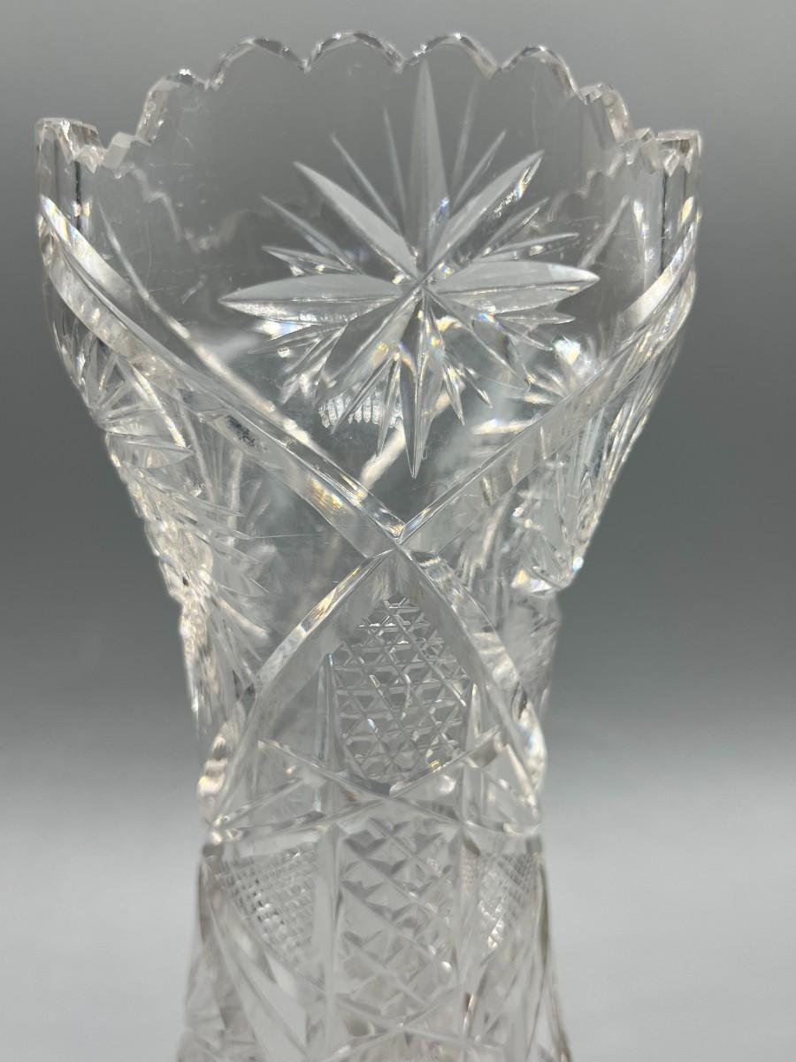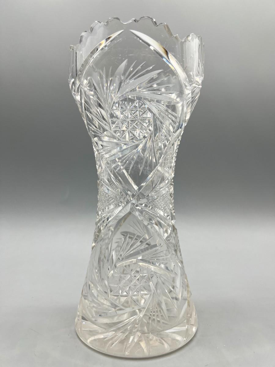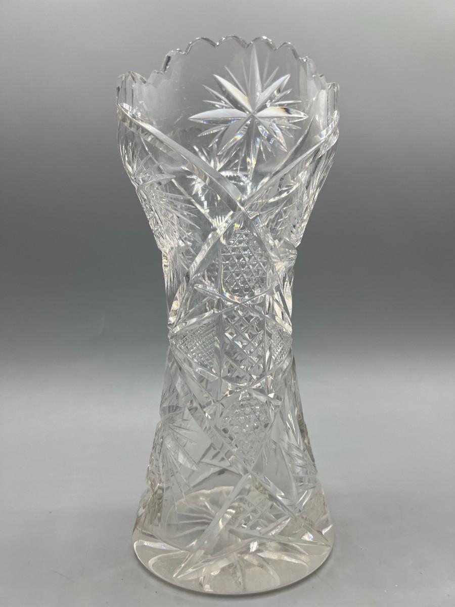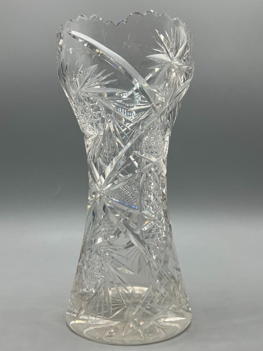 Retro American Brilliant Cut Crystal Glass Corset Hourglass Flower Vase