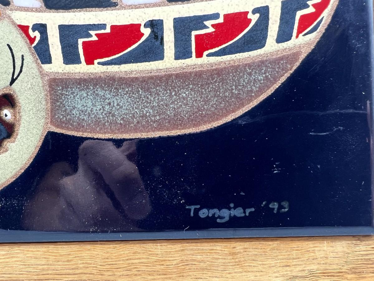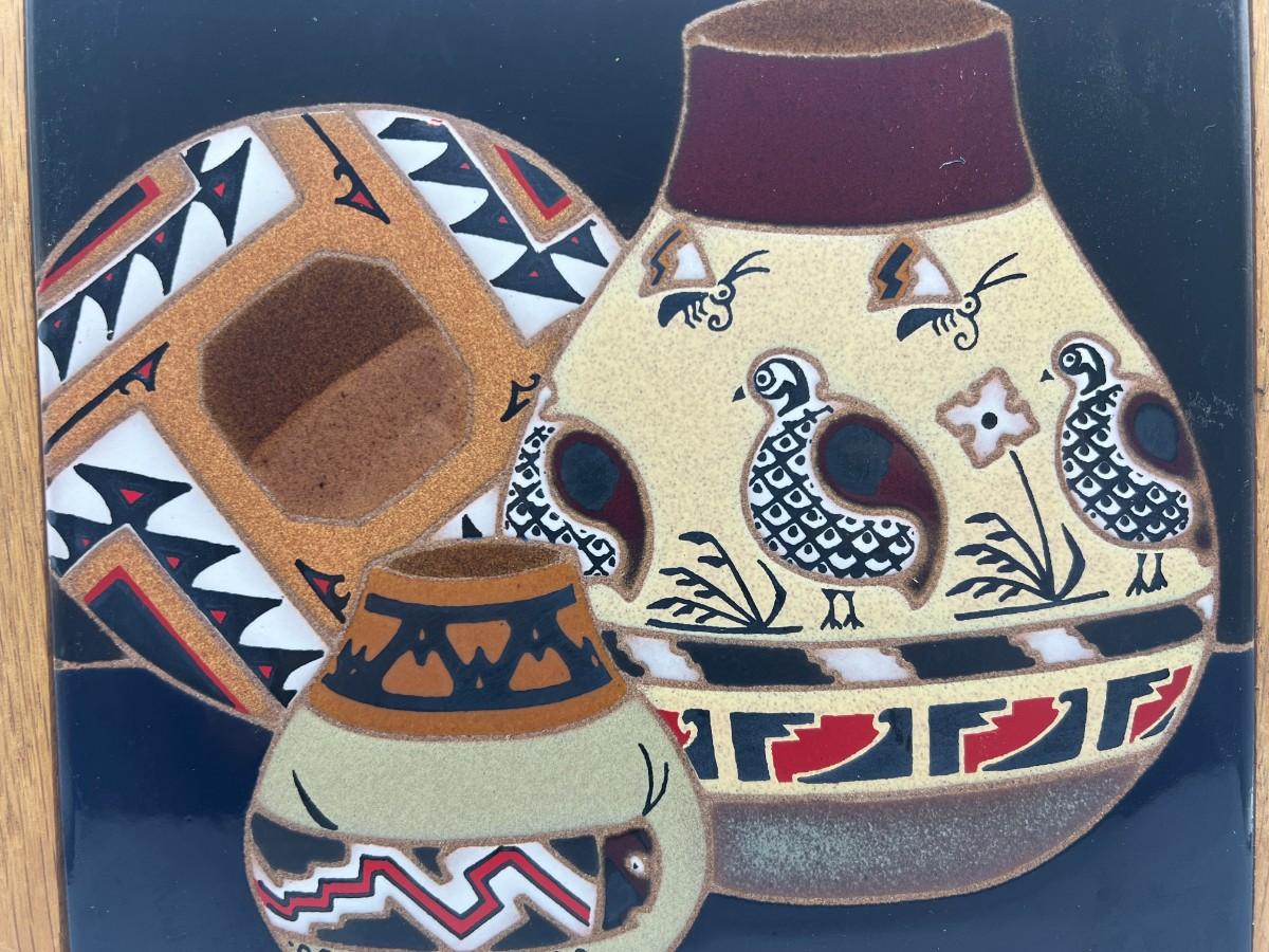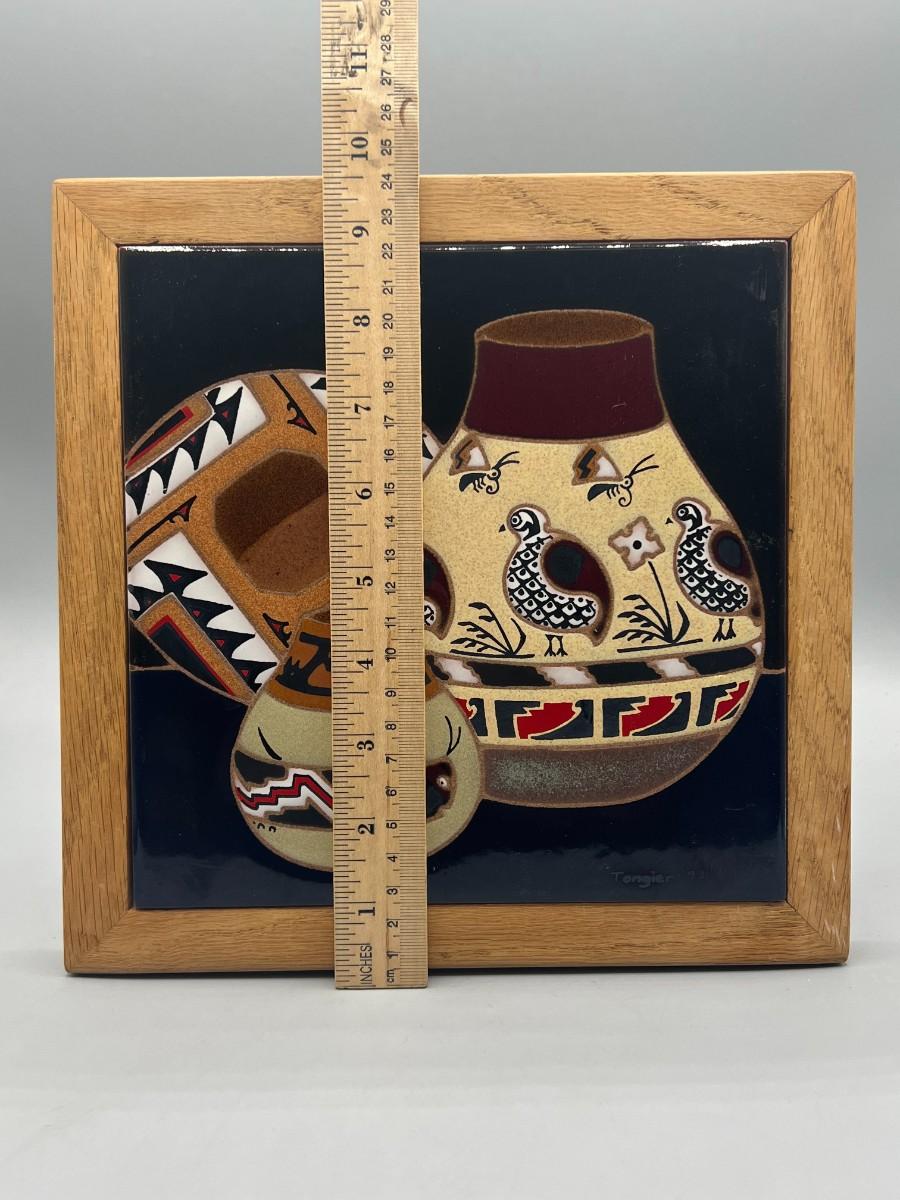 There is no significant damage to the tile or wooden frame and is in overall good collectible or displayable condition. Check pictures for more details and for sizing.