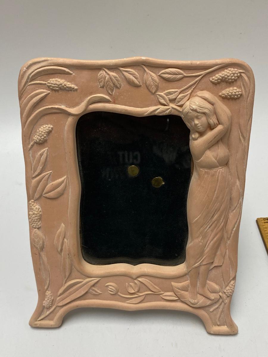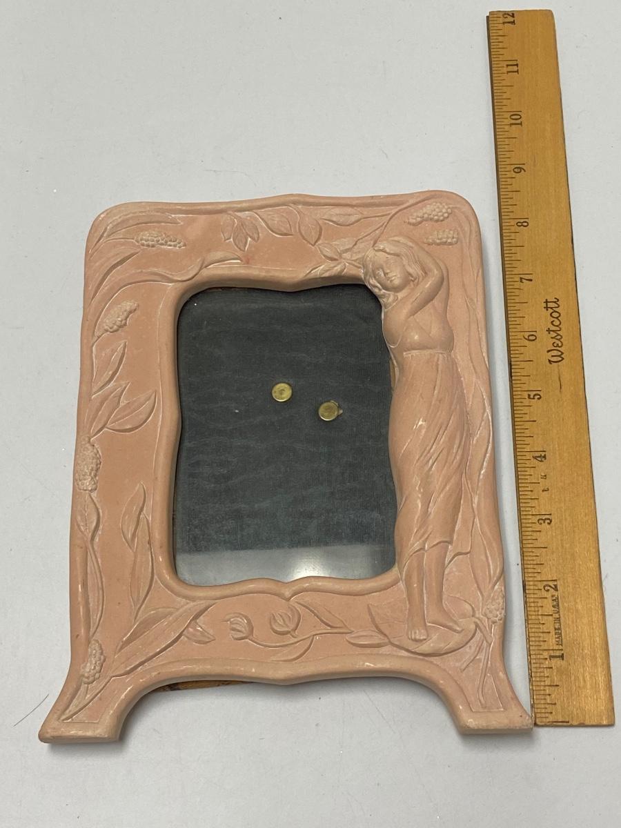 There is light wear and a small chip, but there is no significant damage and is in overall good useable condition. Check pictures for more details and for sizing.