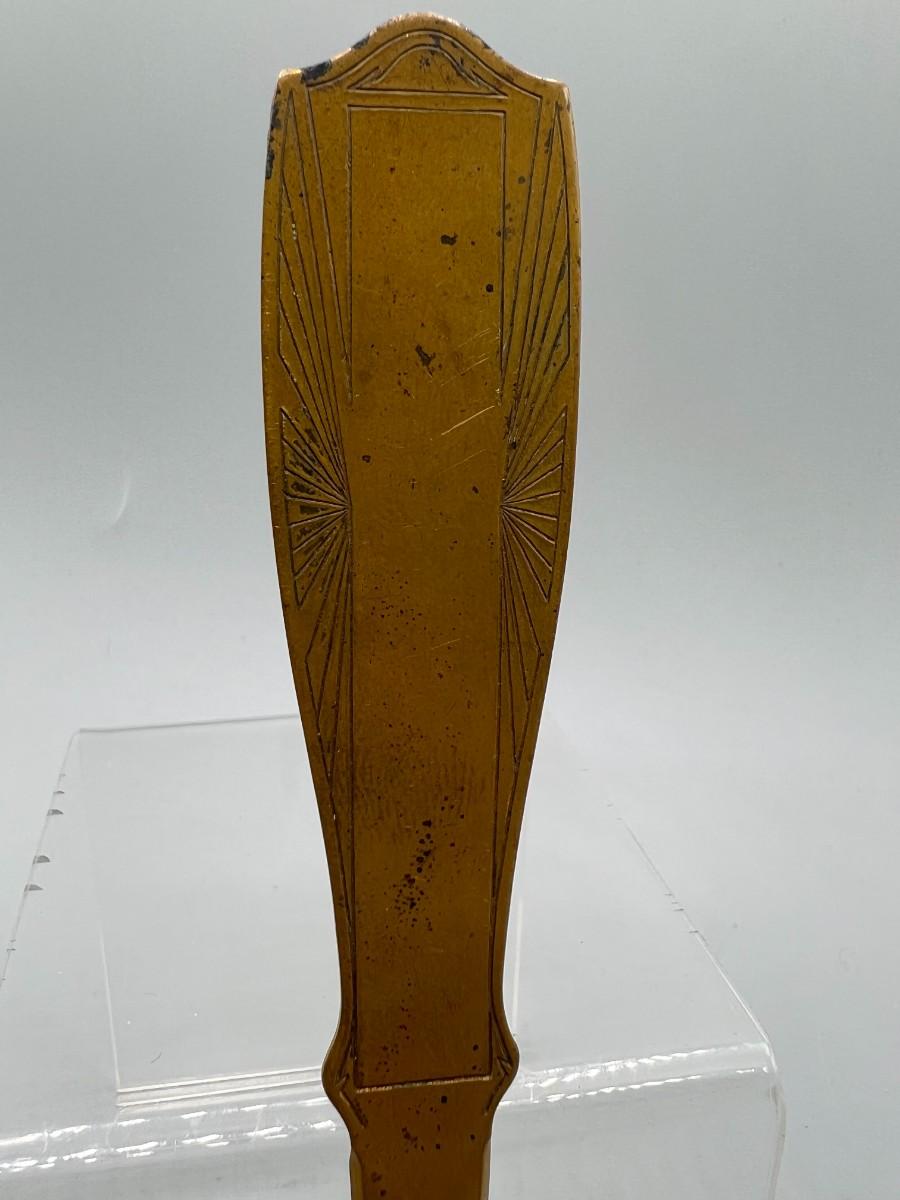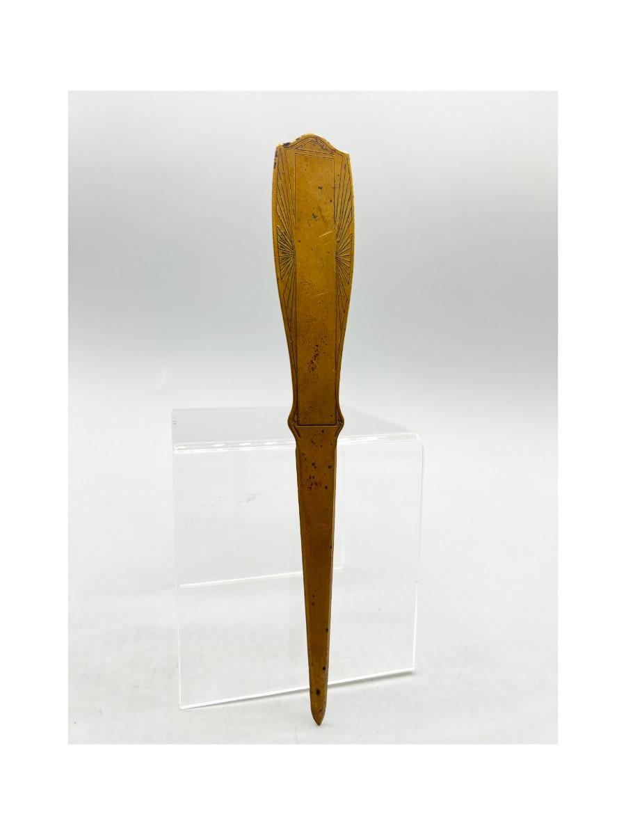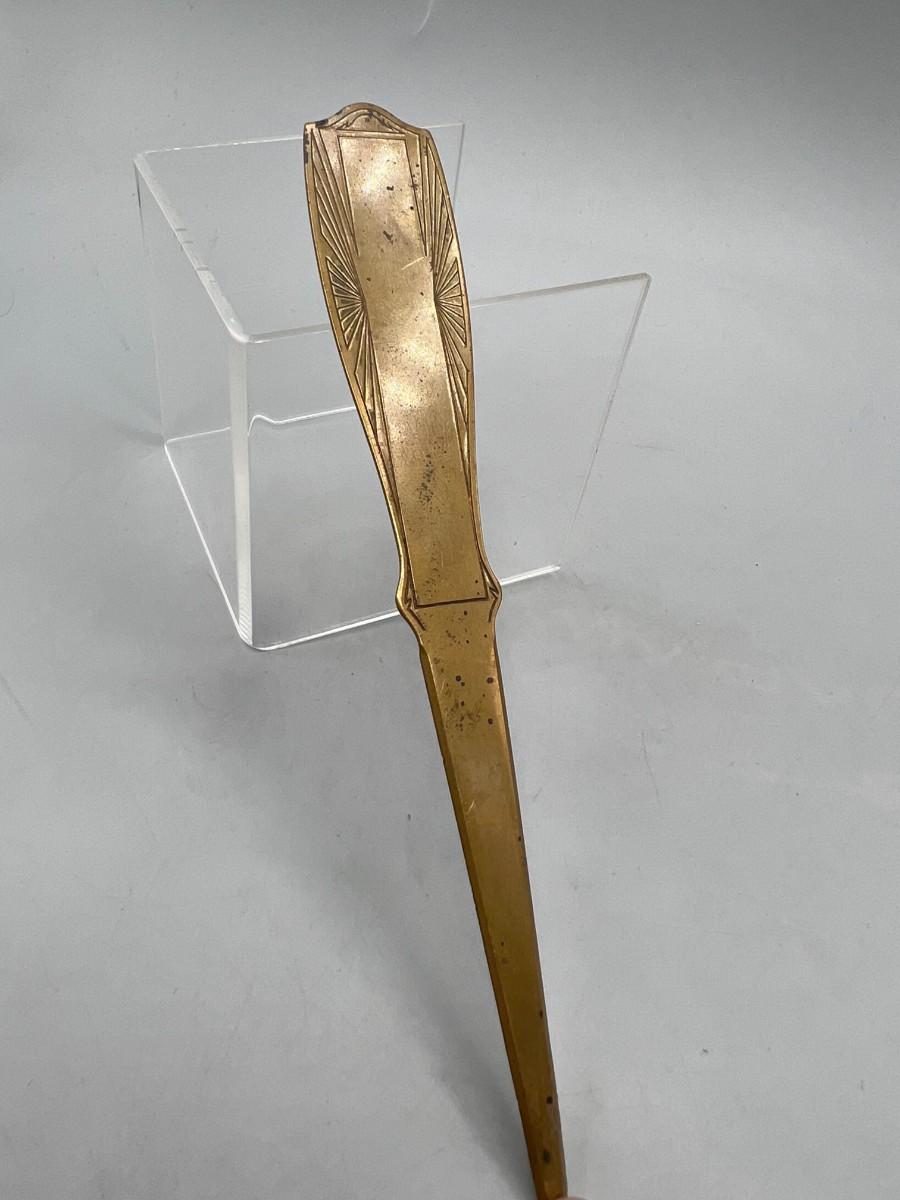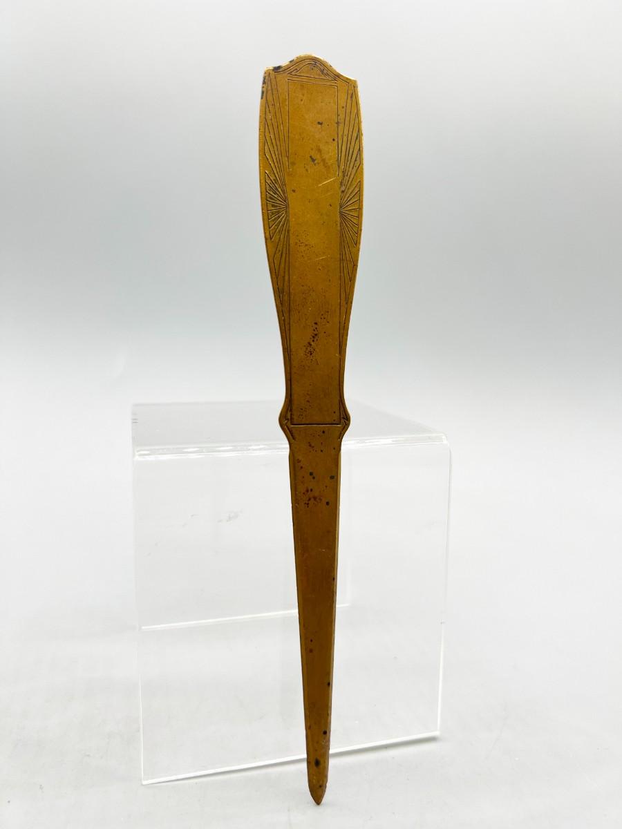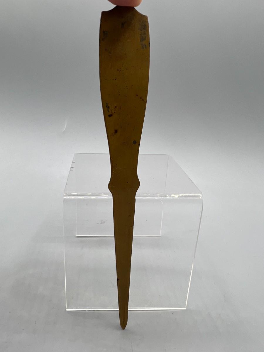 There is no significant damage to the letter opener and is in good collectible and useable condition. Check pictures for more details and for sizing.