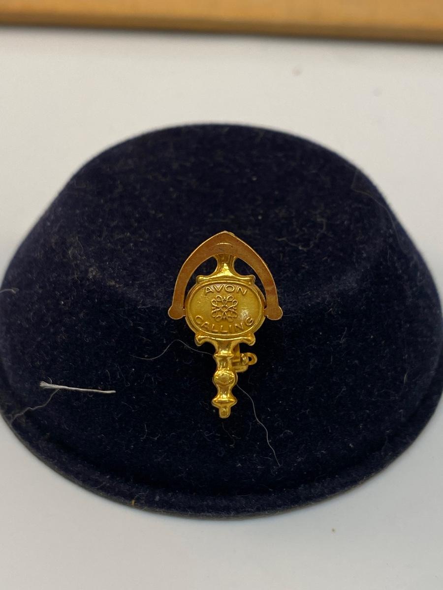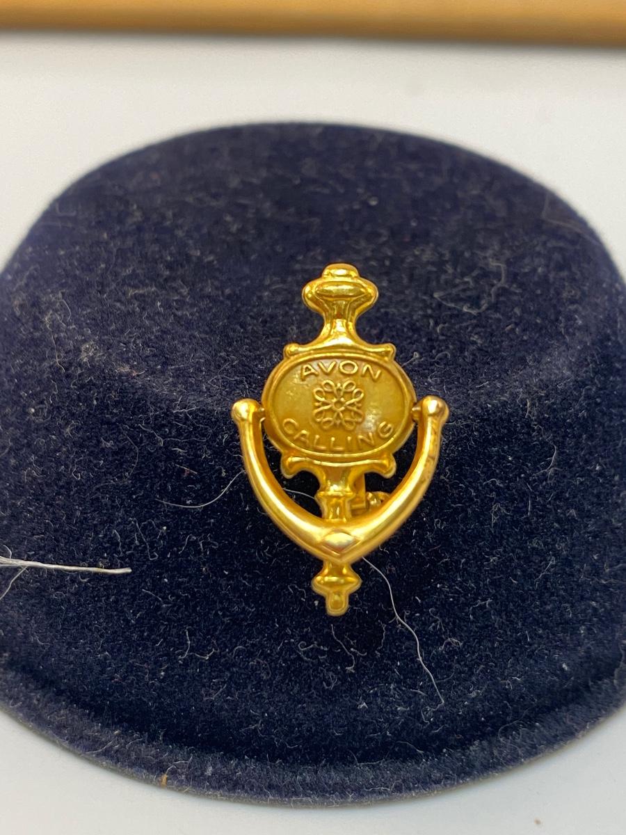 Retro AVON Door Knocker Sales Pin. Knocker handle actually moves. Under 1" size.