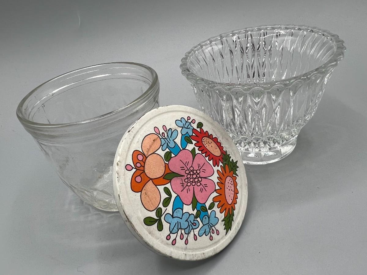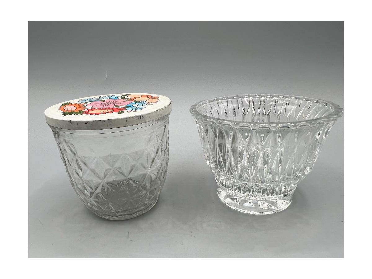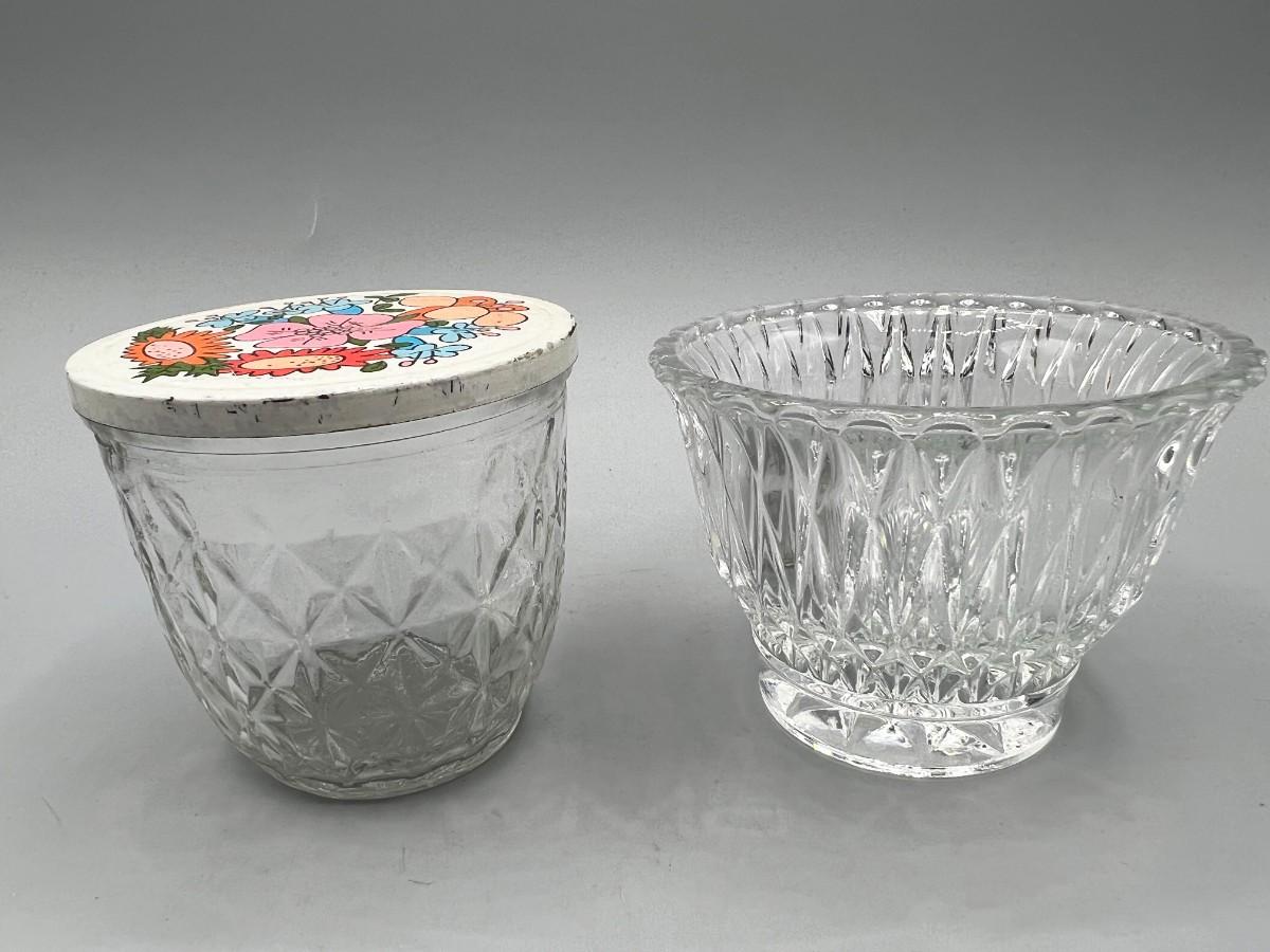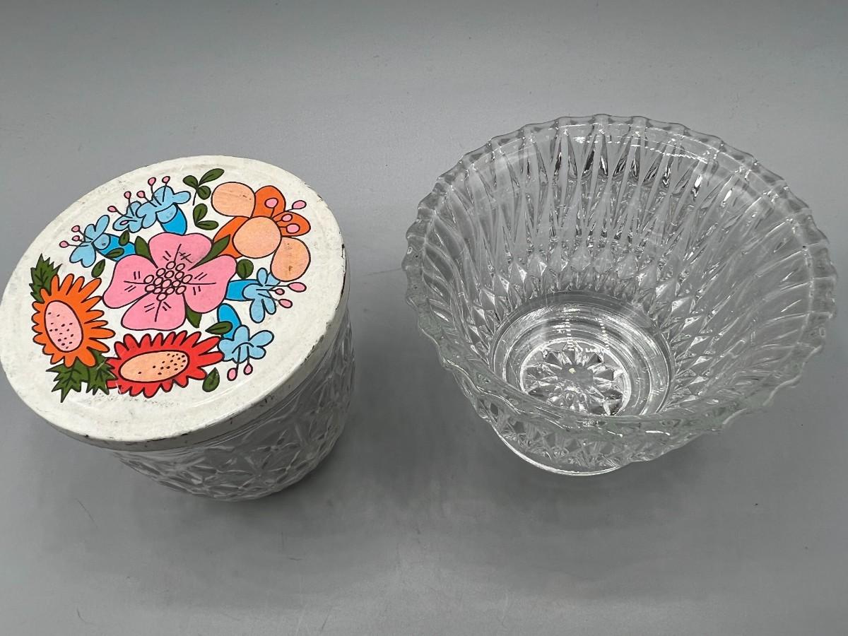 Retro Ball Quilted Crystal Glass Jar with Lid & Pattern Glass Bowl