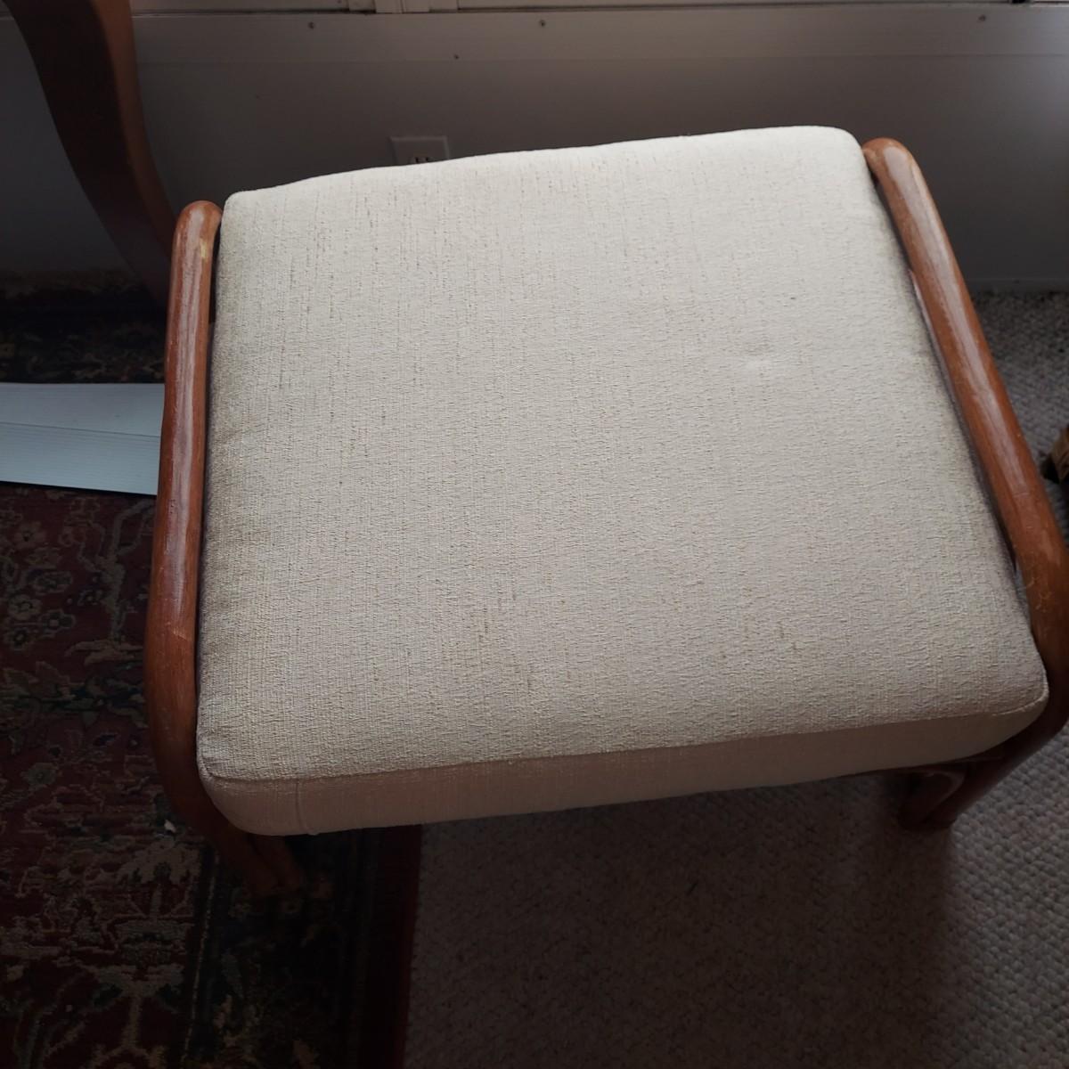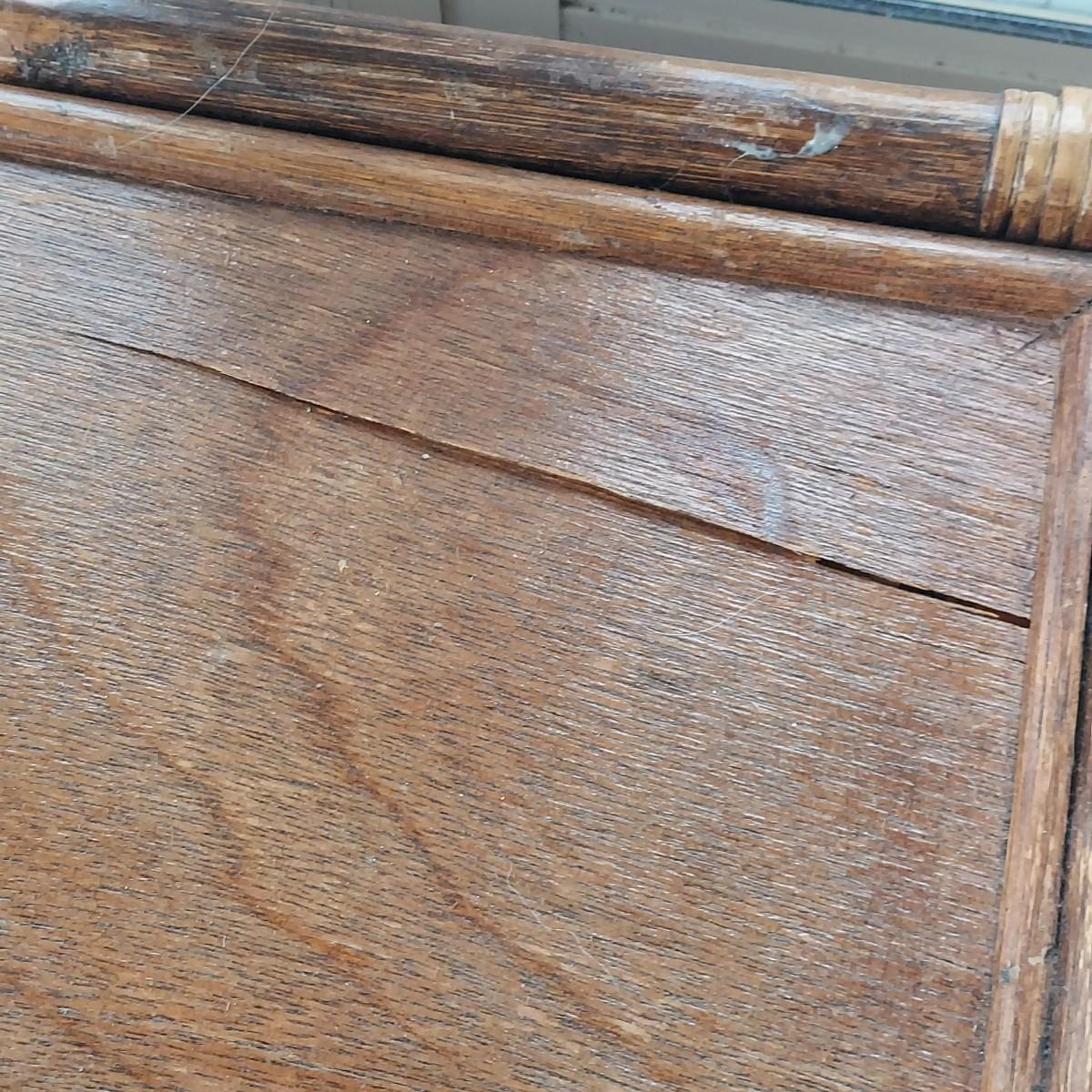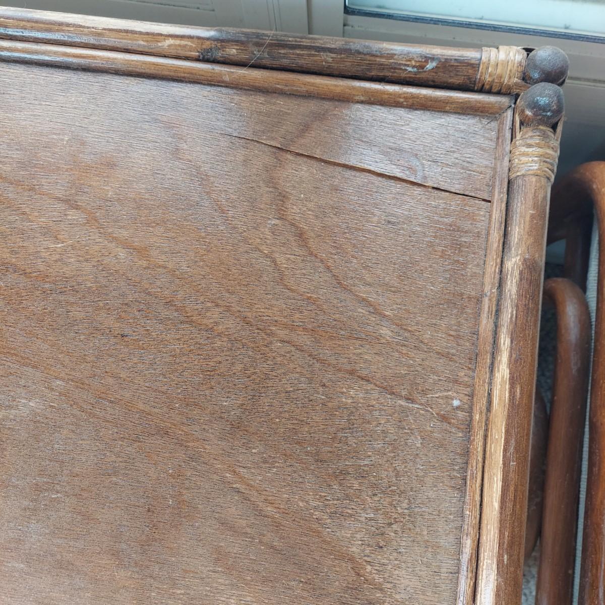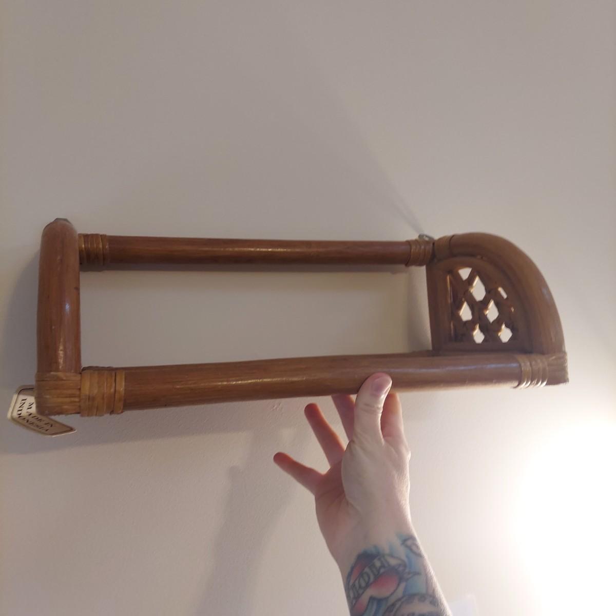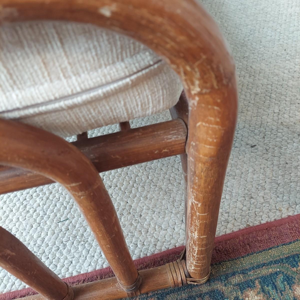 Four pieces of retro bamboo furniture and decor including a two-tier shelving unit, an ottoman with a removable cushion, three wall shelves and and magazine rack. The shelving unit measures 55” x 20” x 54"H. The ottoman is 27” x 24” with an 18"H seat height. The shelves are 18”, 24” & 30” long. Some condition issues. Please see photos for details. Local Pickup Only. Winning bidder must bring assistance to help move and load this item due to its weight and/or size.