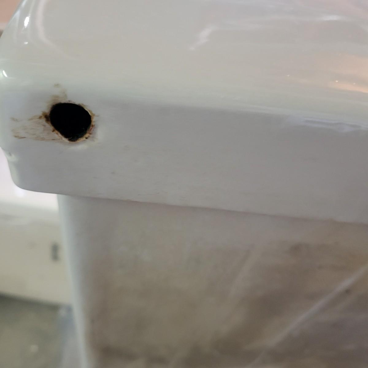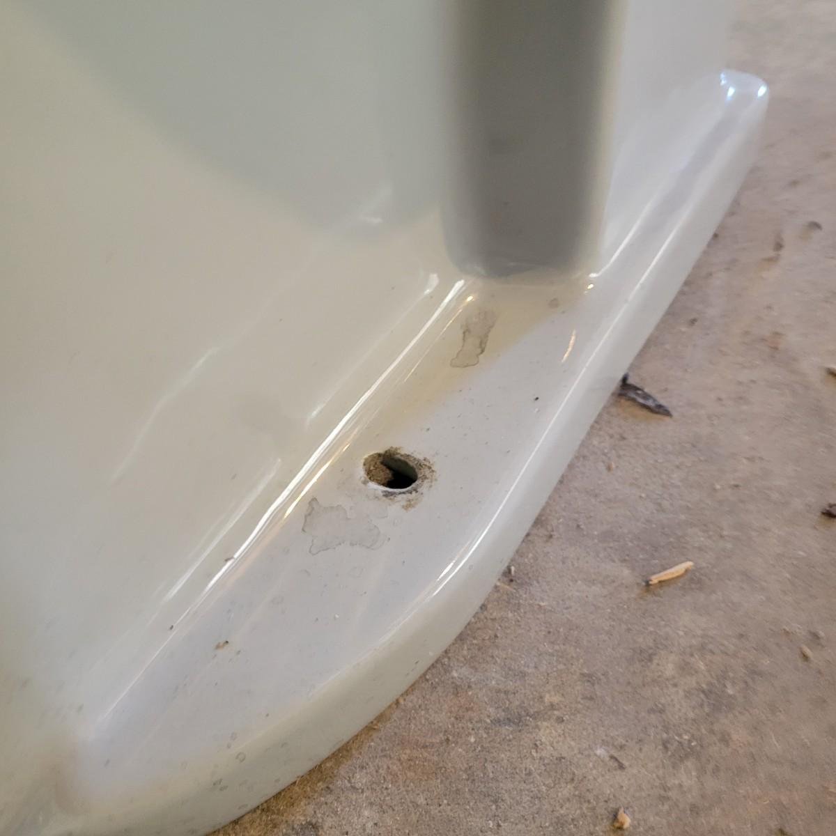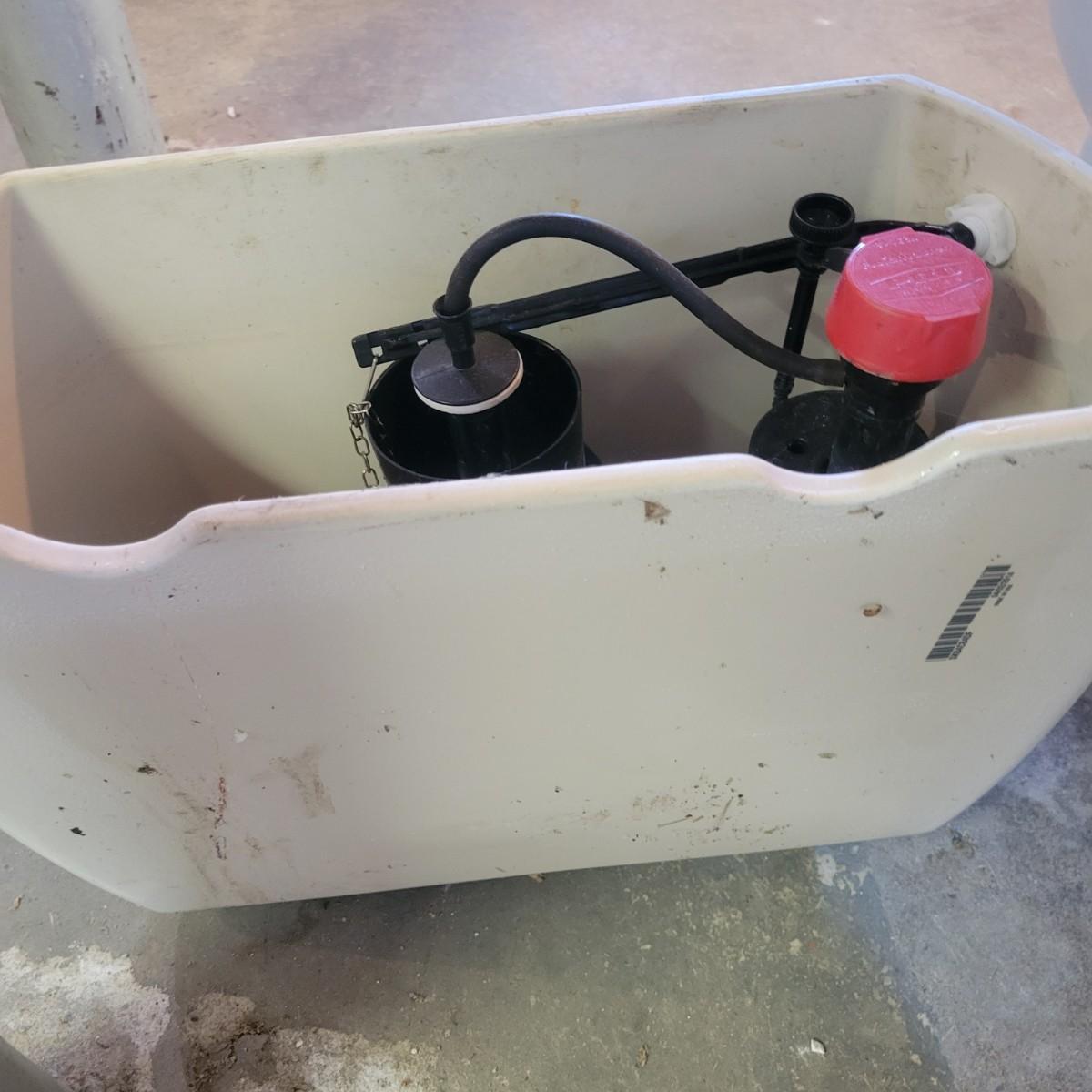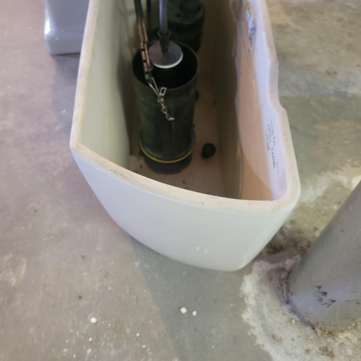 A bathroom sink, toilet and NIB Kohler tank in good condition. Sink is a soft yellow color and was originally under mounted with its finished front exposed. Measures approximately 20" x 18" x 11" not including faucet and drain pipe. The toilet is a soft blue-gray color and is in excellent condition, but does need a new flushing mechanism. Measures approximately 20.5" x 28" x 29.5". Also included is NIB Kohler Wellworth Classic tank in white. Measures approximately 19" x 8" x 13". Local pickup only.