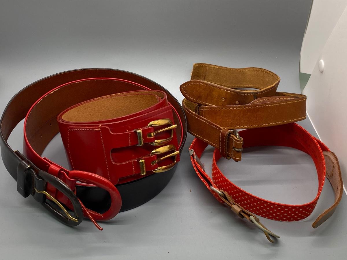 Lot of 5 belts. Small sizes, 26"-28" waist. In good used condition.