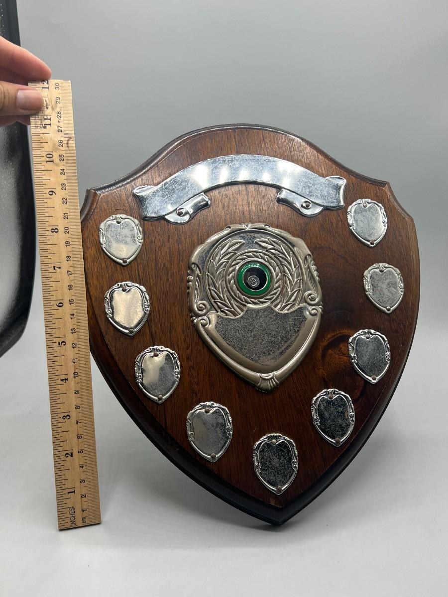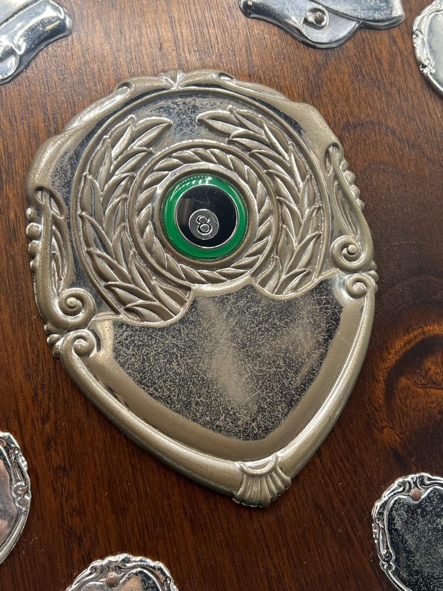 Retro Billiards Pool Hall Award Shield Shape Displayable Plaque