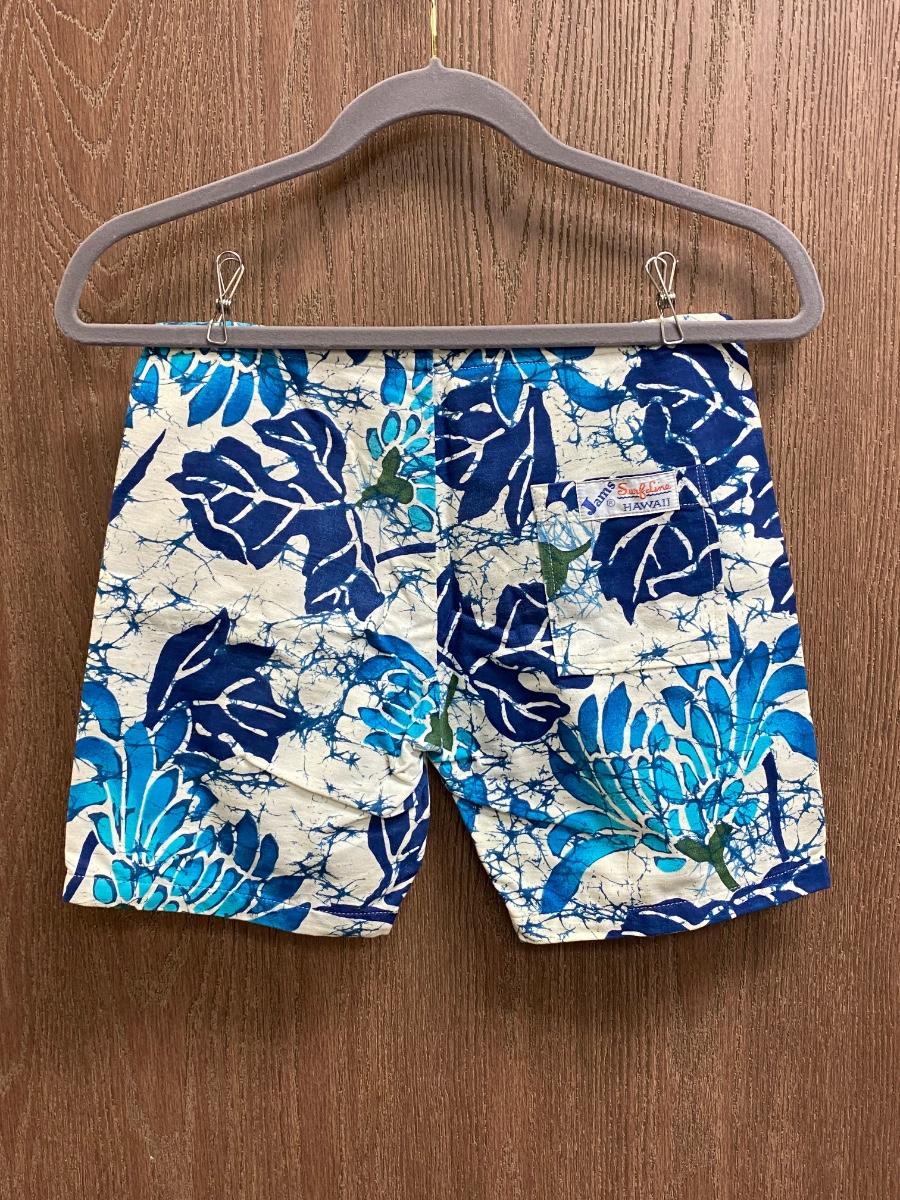 Retro Blue and White Tropical Surf Beach Shorts Swim Trunks Jams Surfline Hawaii