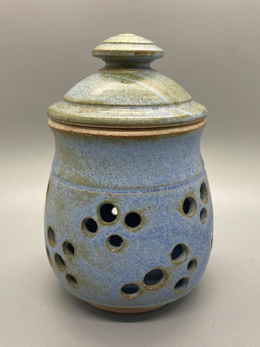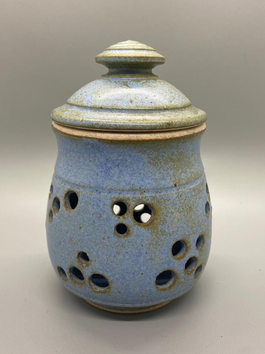 Retro Blue Ceramic Stoneware Kitchenware Garlic Keeper Jar