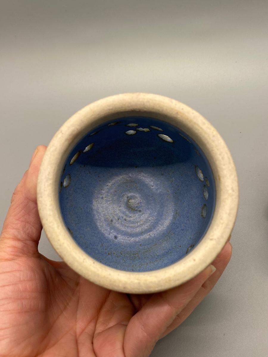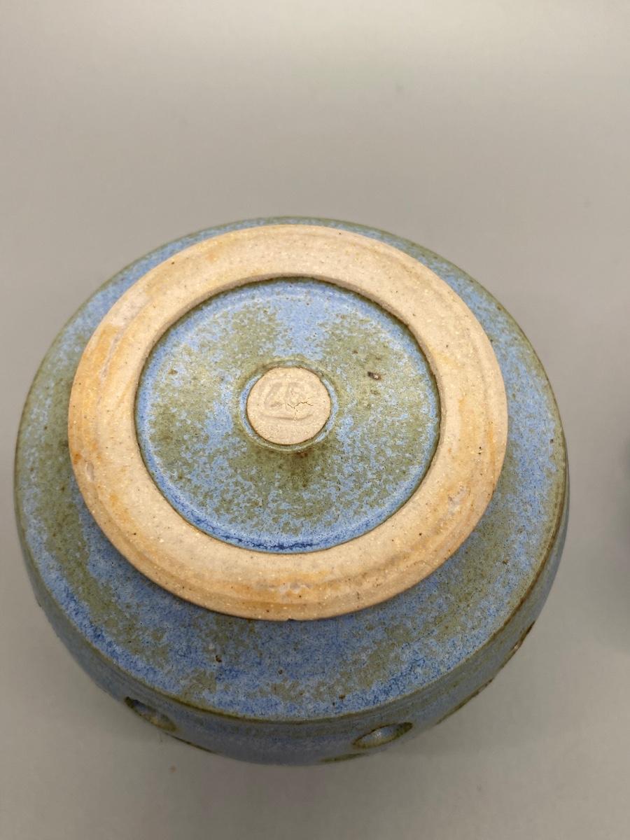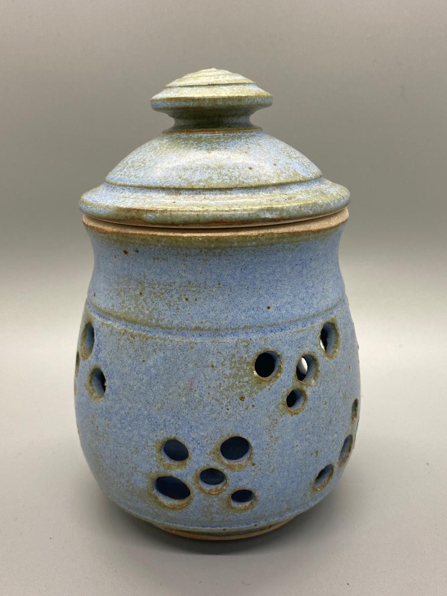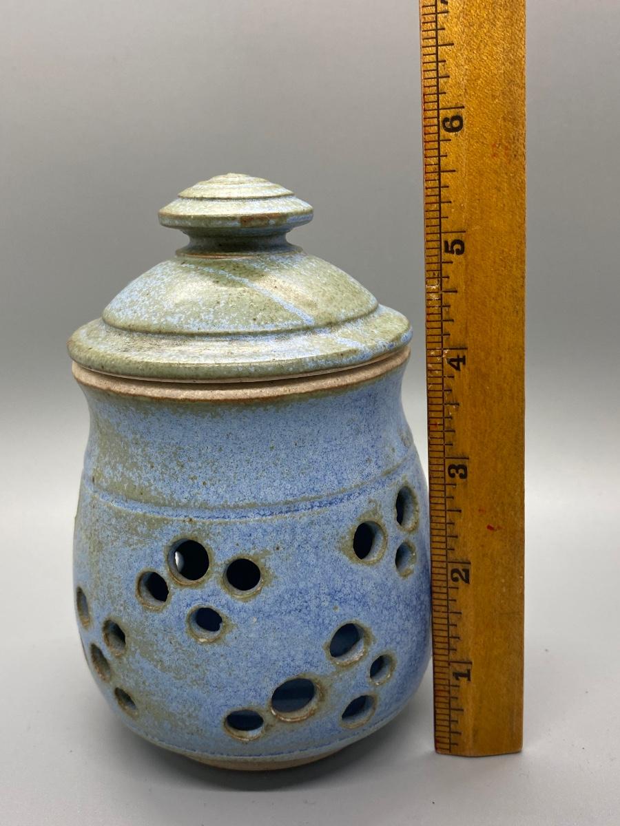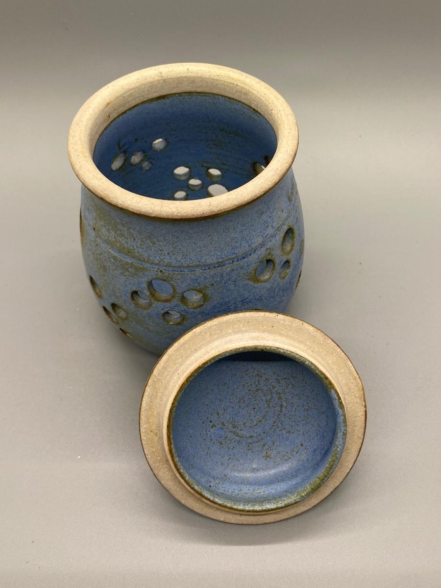 Retro Blue Ceramic Kitchenware Garlic Keeper Jar, there is no significant damage to the jar and is in good useable condition. Check pictures for more details and for sizing.