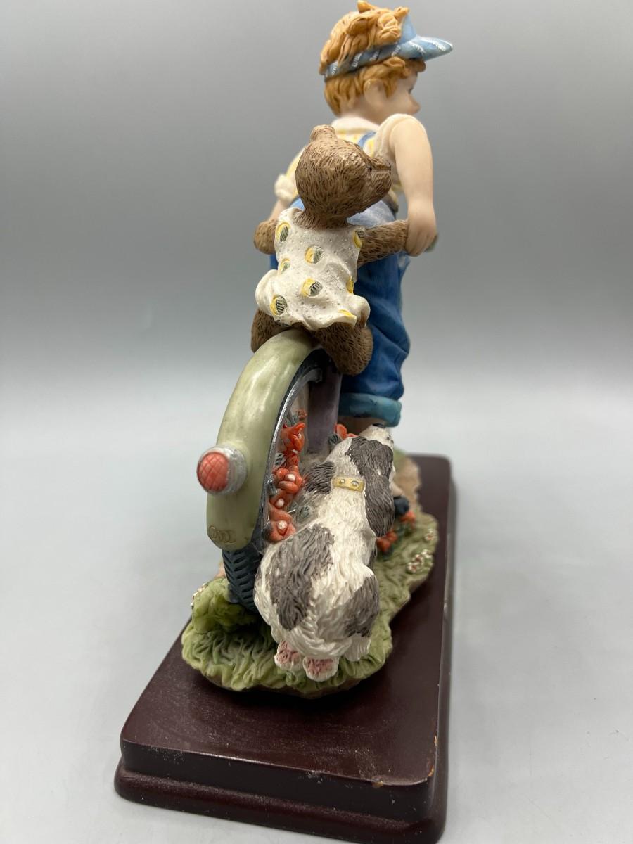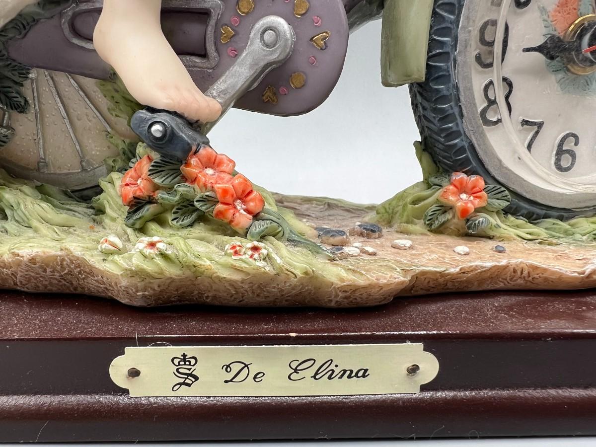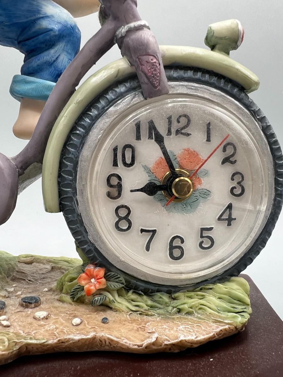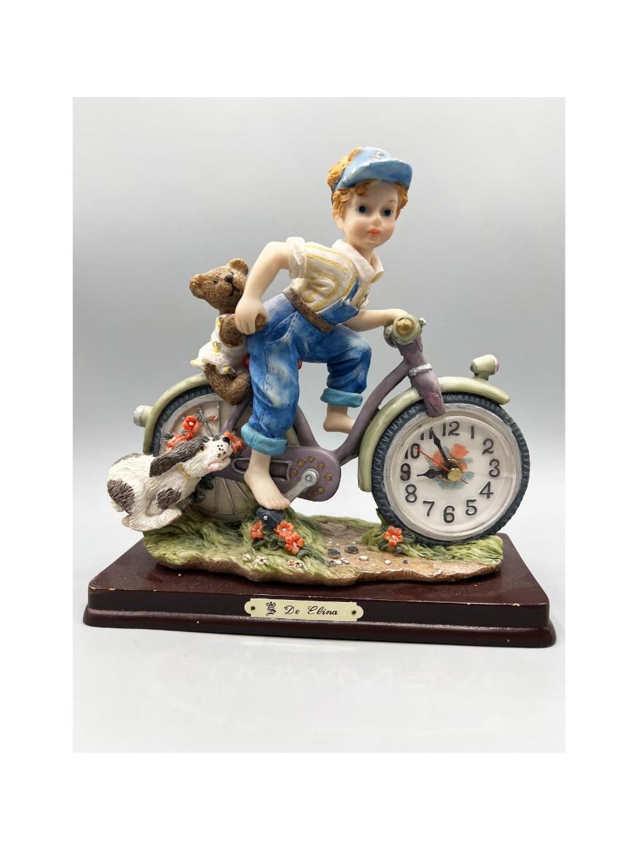 Retro Boy Riding Bicycle with Teddy Bear Ceramic Figurine Battery Operated Mantel Clock