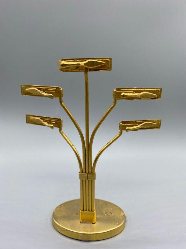 Brass desk top importance organizer. 5 clips each with different importance for to do lists or mail. Does have some signs of age, still great to keep one organized. Stands about 7.5" tall.