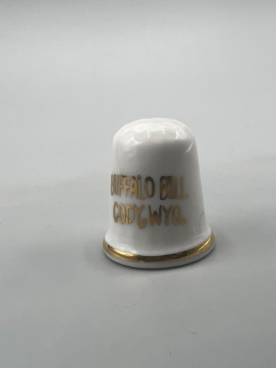 Retro Buffalo Bill Cody Wyoming Ceramic Collectible Souvenir Thimble