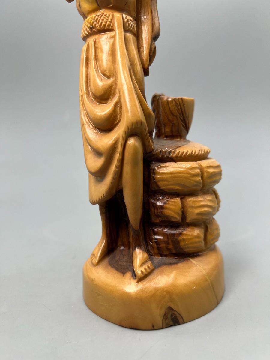 Retro Carved Wood Biblical Holy Land Woman Carrying Jug Figurine Statue
