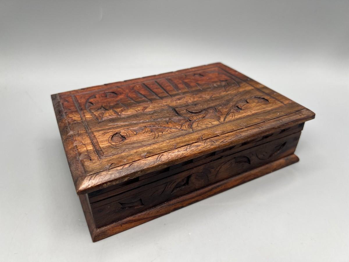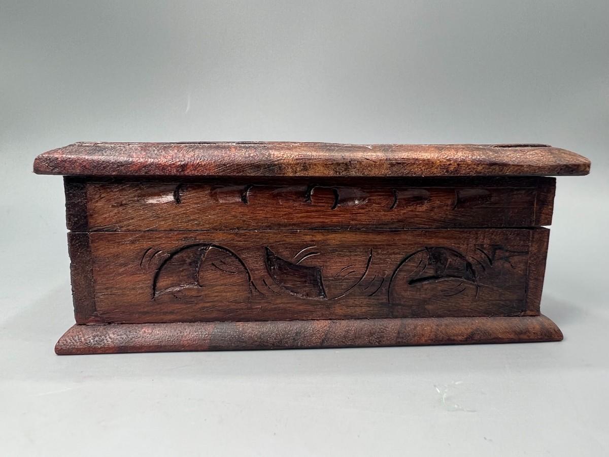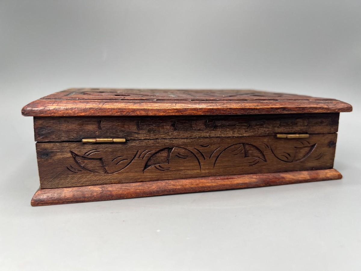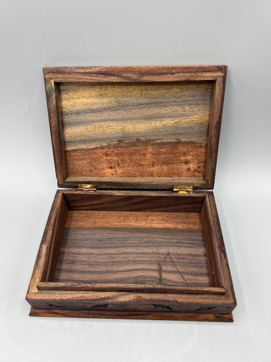 Retro Carved Wood Bird Pattern Jewelry Trinket Box, there is no significant damage to the wooden box and is in good useable condition. Check pictures for more details and for sizing.