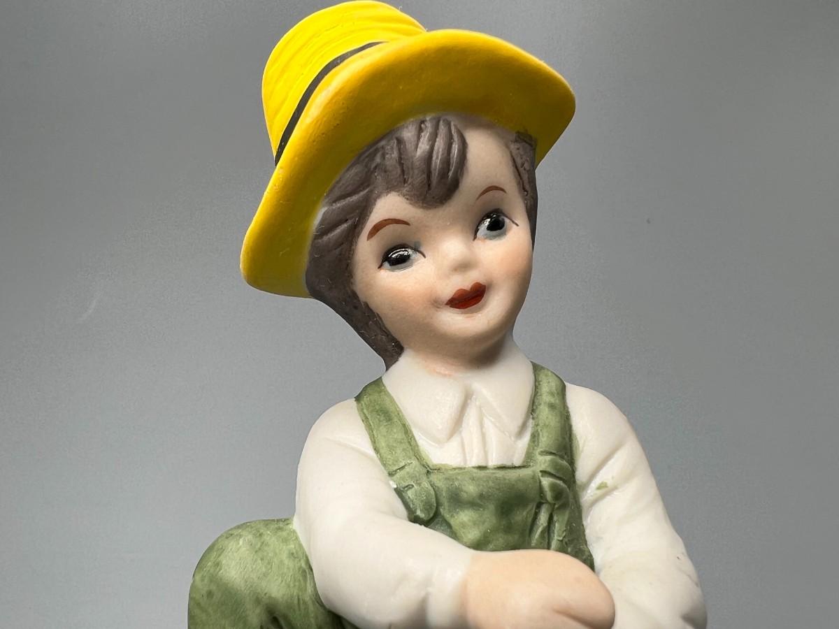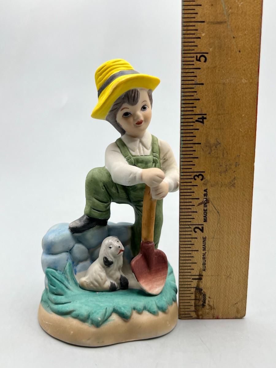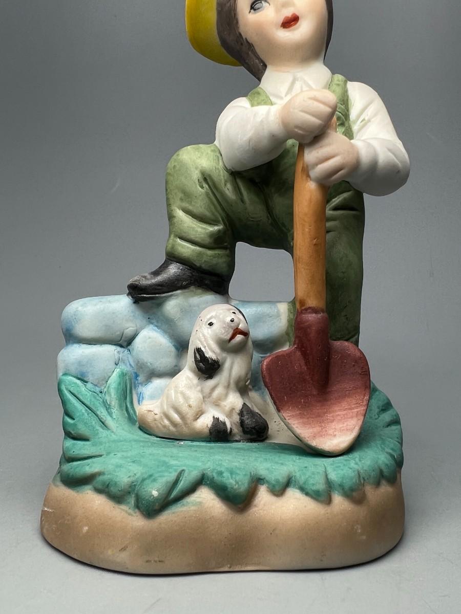 Retro Ceramic Figurine European Boy with Shovel & Puppy