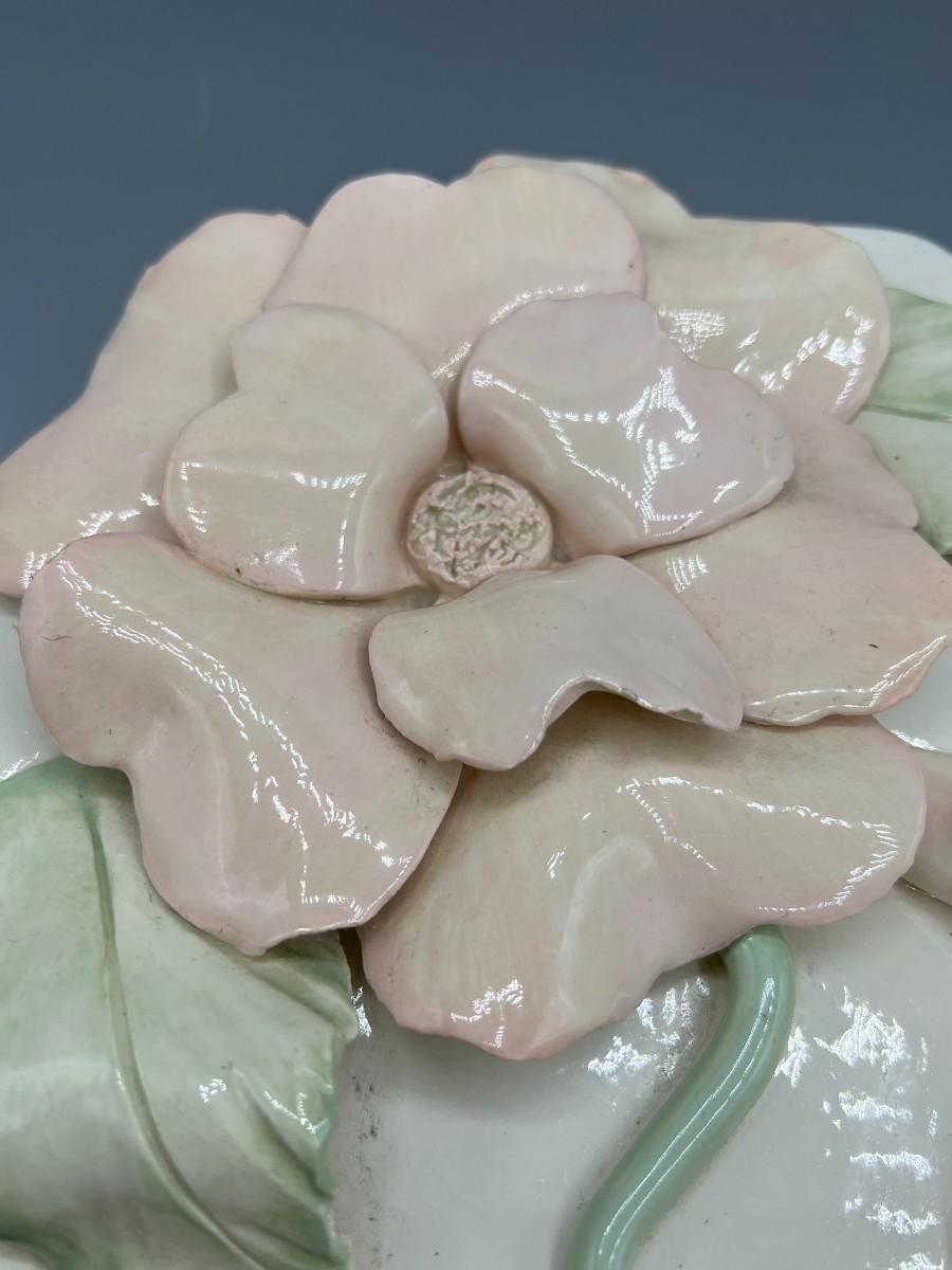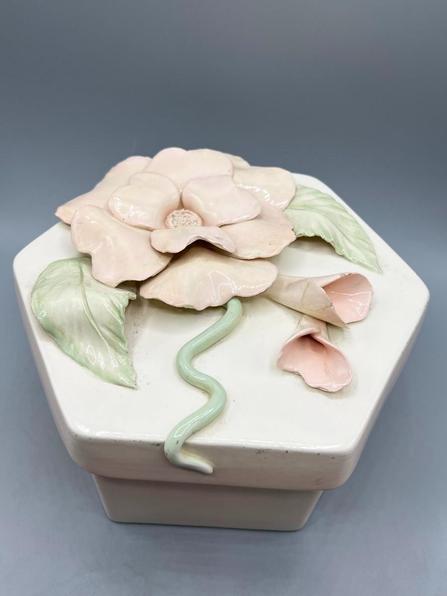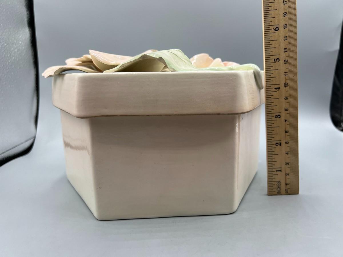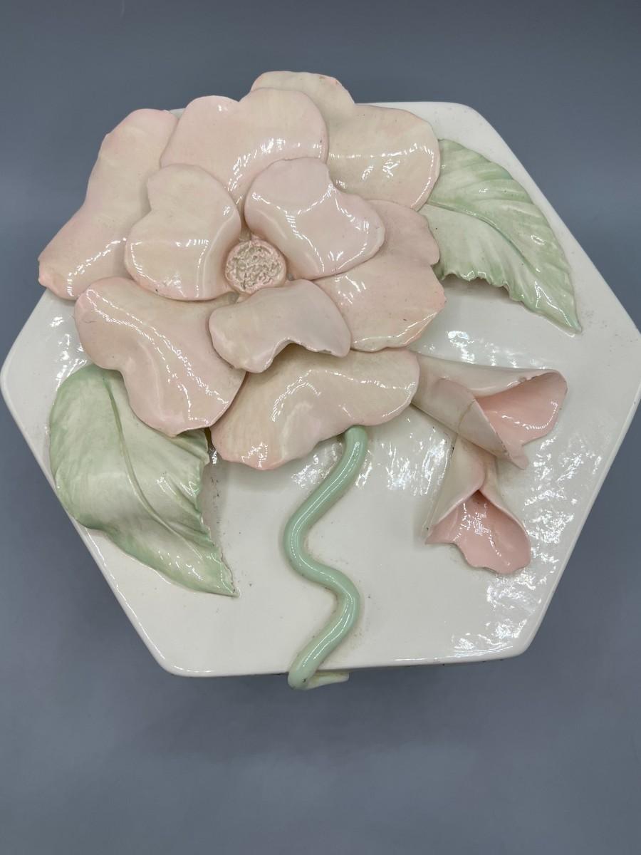 Retro Ceramic Glazed Flower Signed Pottery Art Trinket Jewelry Box
