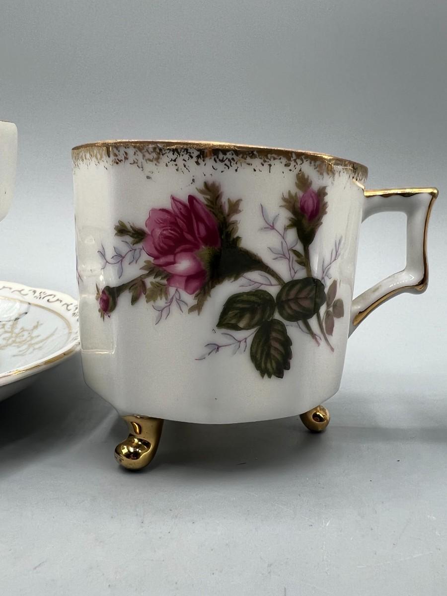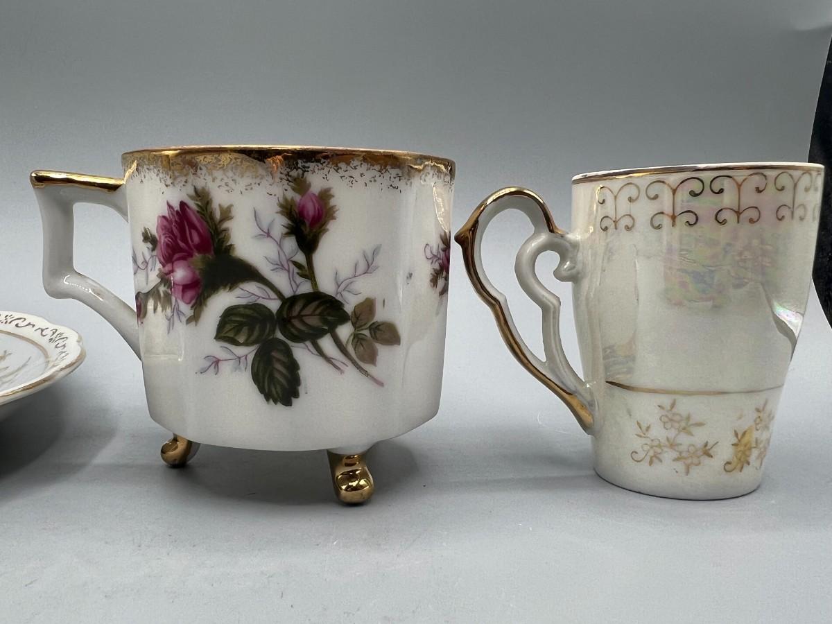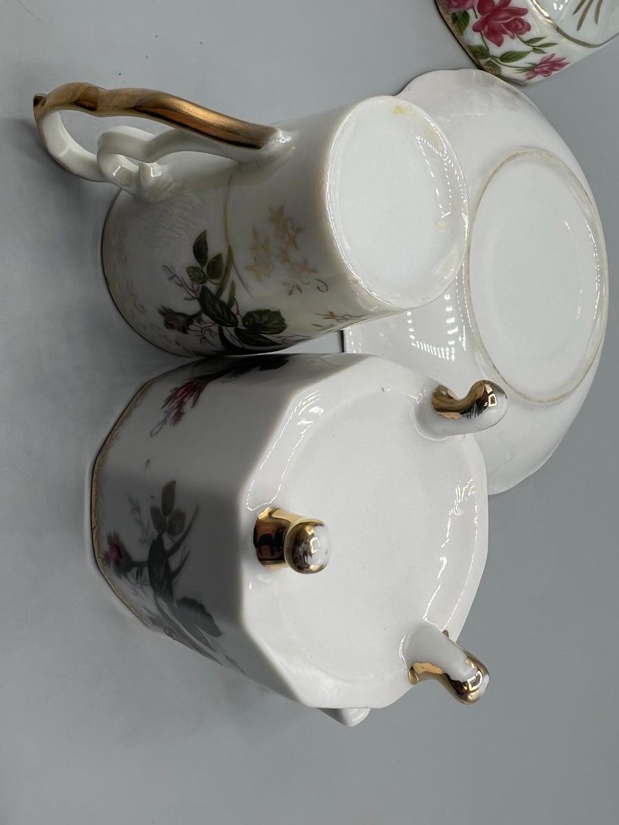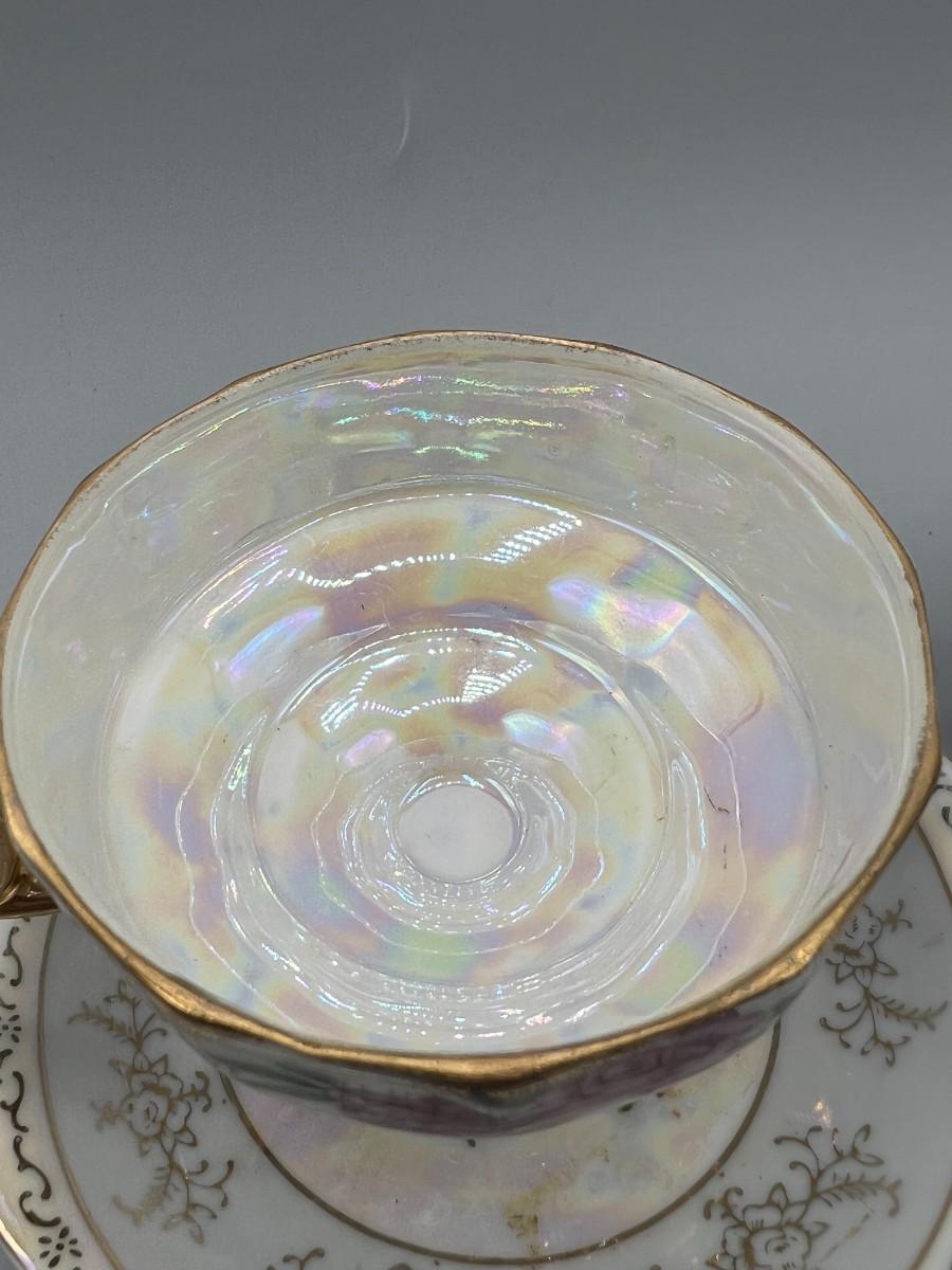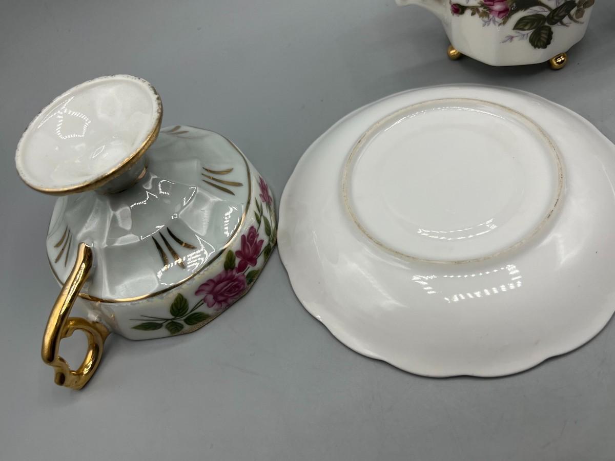 Retro Ceramic Opalescent Rose Pattern Tea Set Sugar Bowl, Teacup, & Creamer Serving Cup
