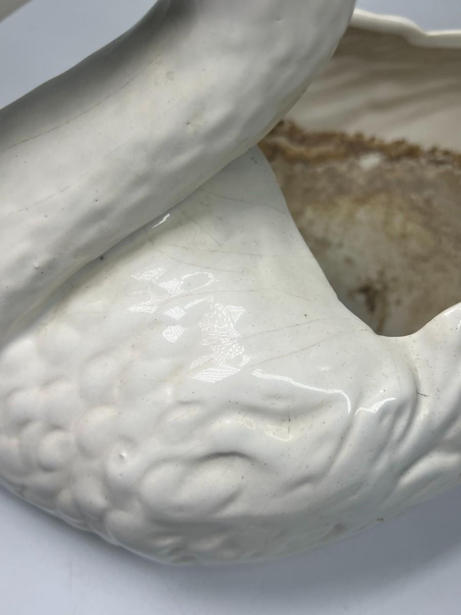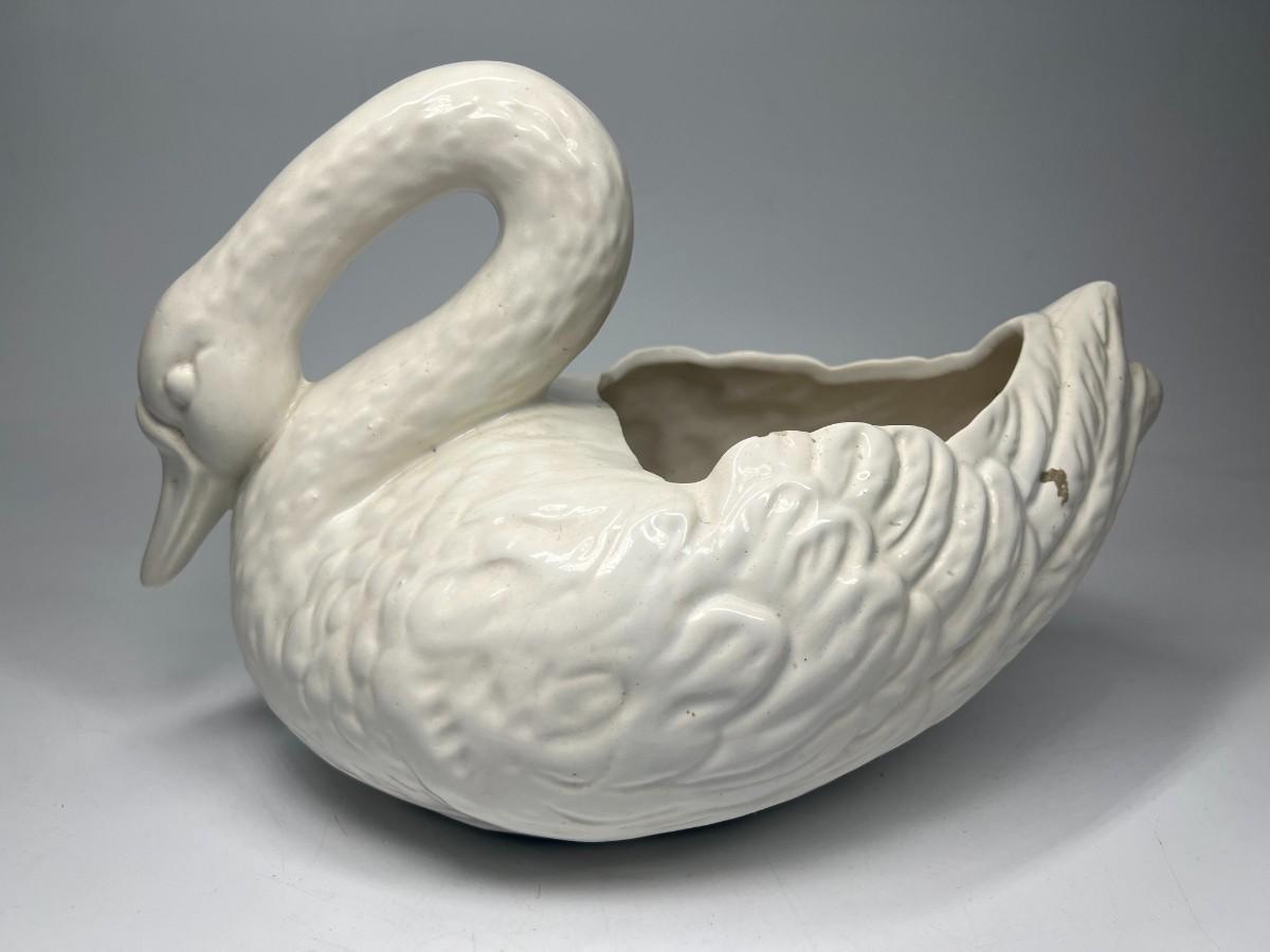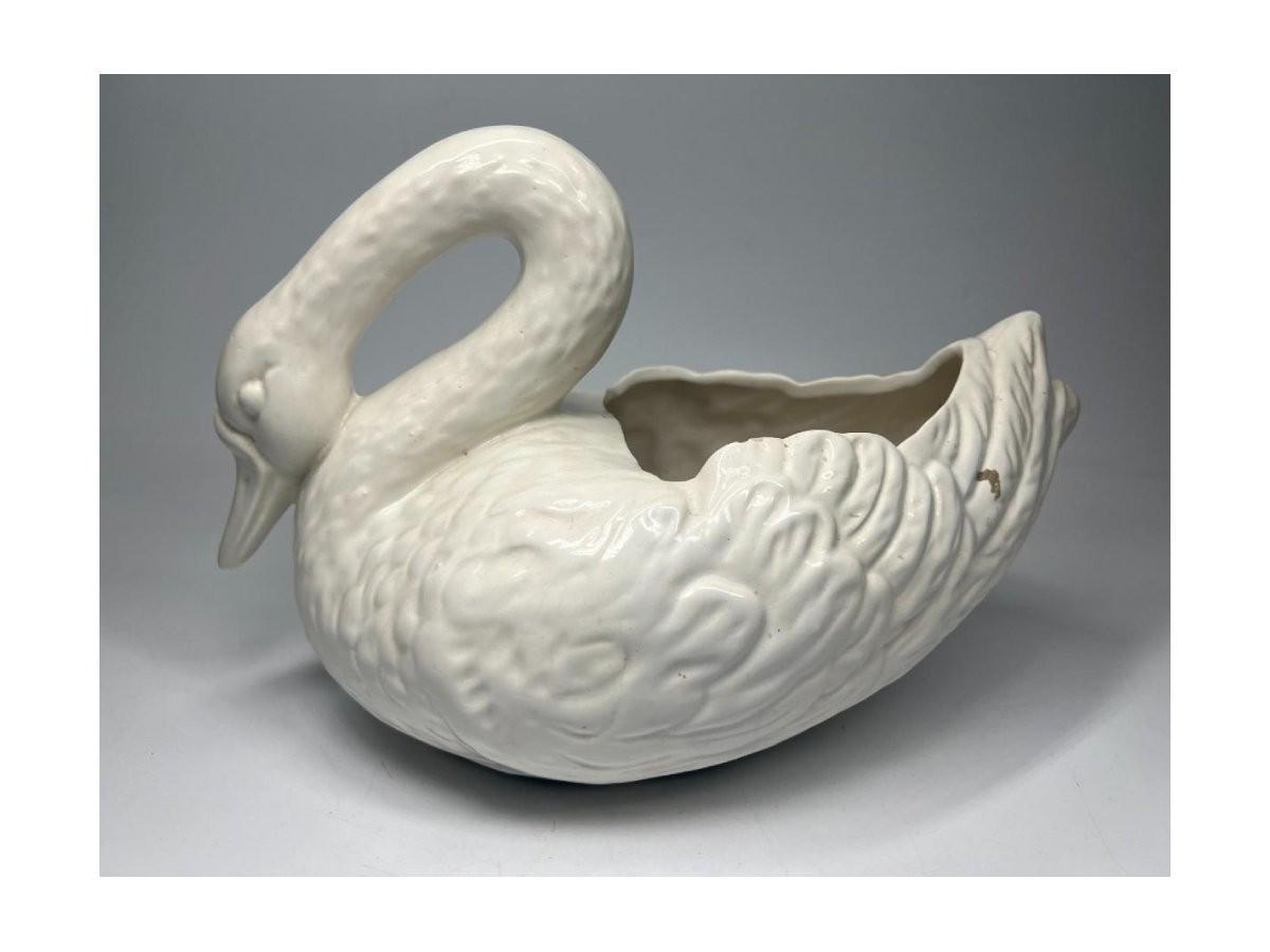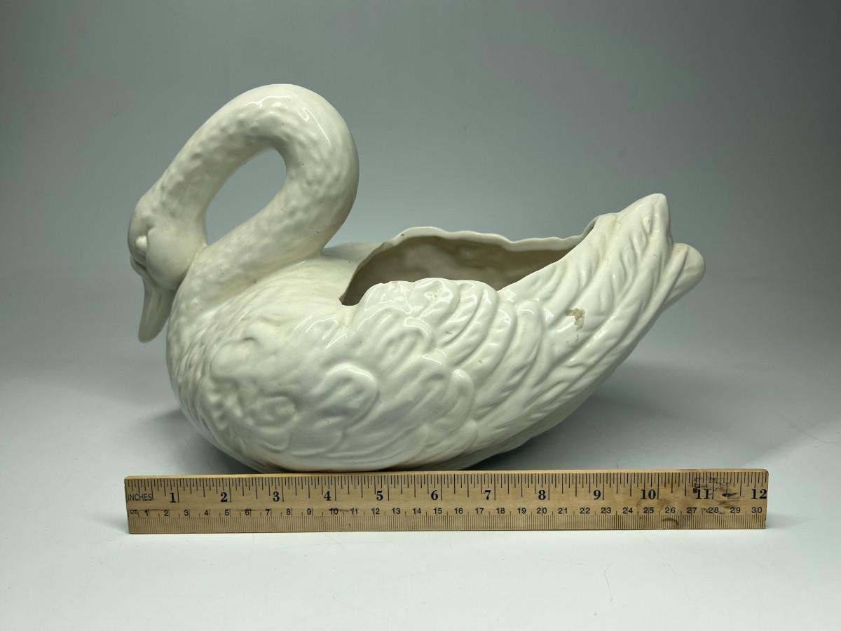 Retro Ceramic Pottery Art White Swan Garden Art Figurine Flower Planter Bowl