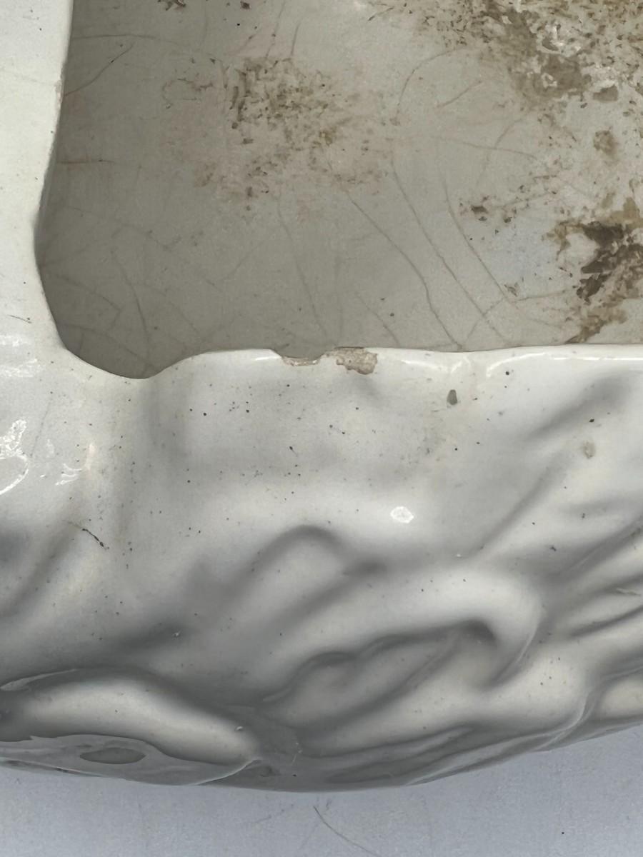 There is some chipping to the planter, but there is no significant damage and is in overall good displayable or collectible condition. Check pictures for more details and for sizing.