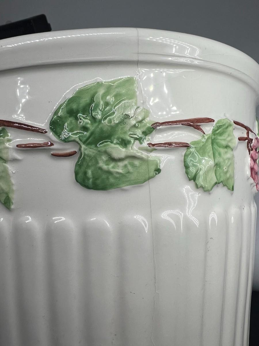 Retro Ceramic Pottery Grape Vine Leaves Motif Flower Garden Art Planter