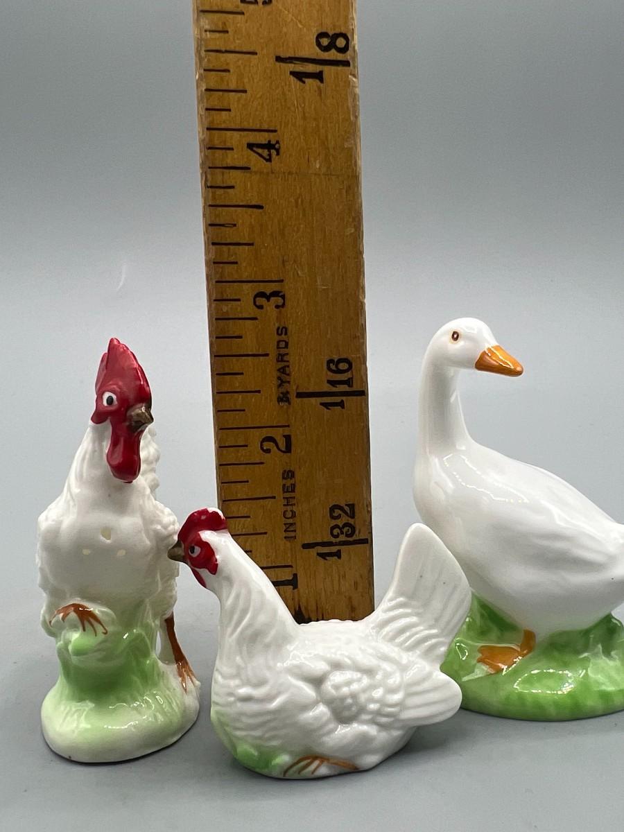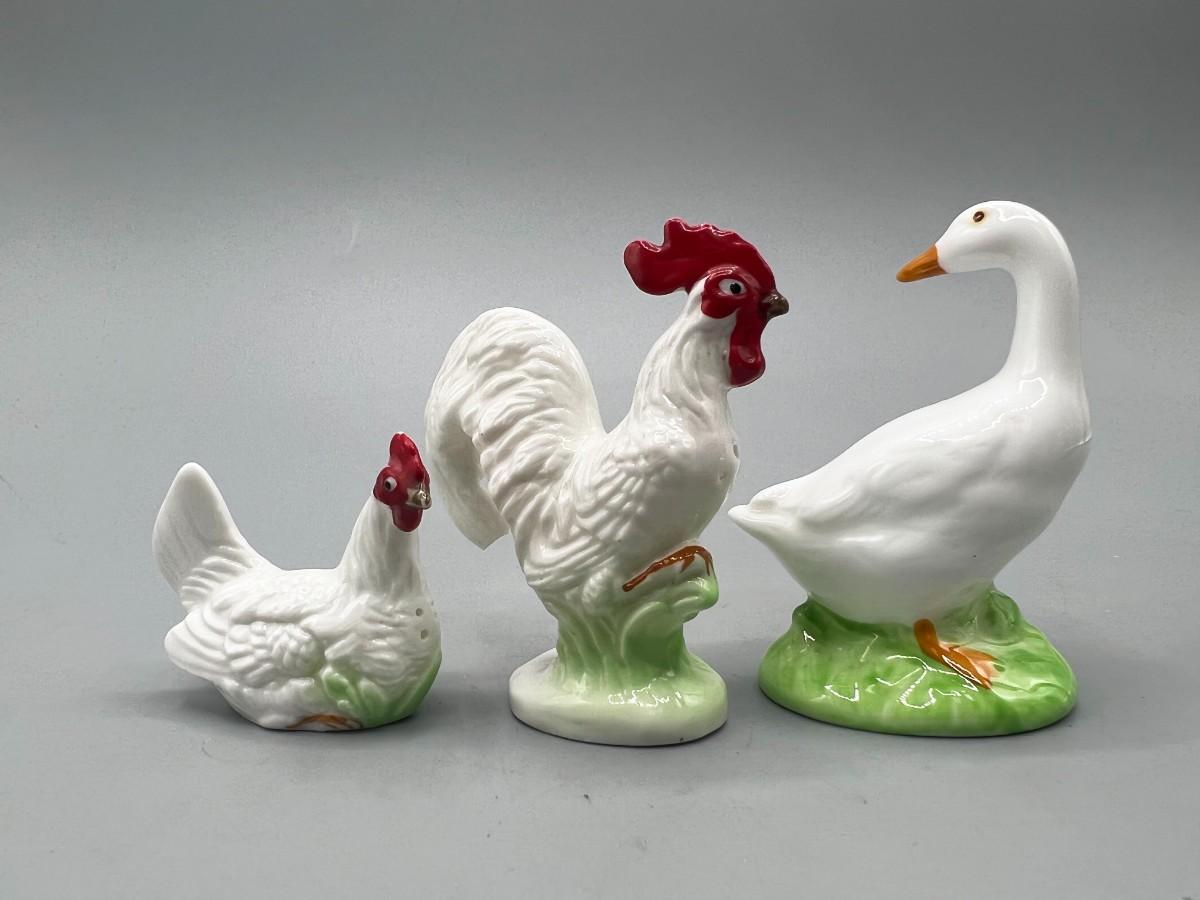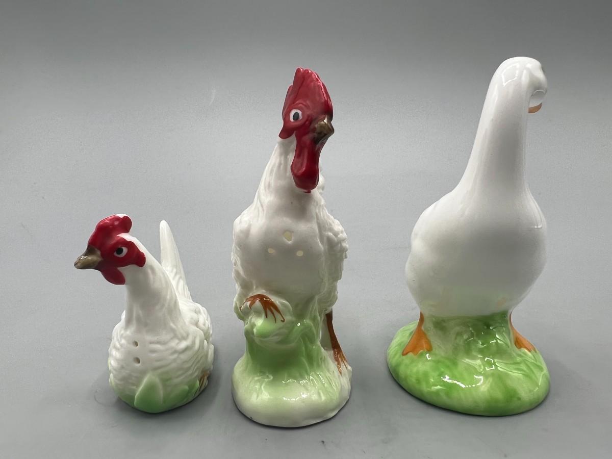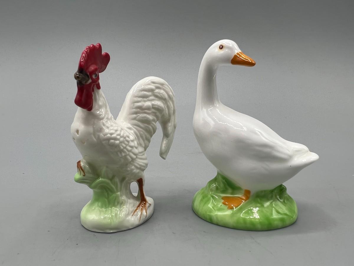 Retro Ceramic Rooster Hen Salt & Pepper Shakers and Duck Figurine