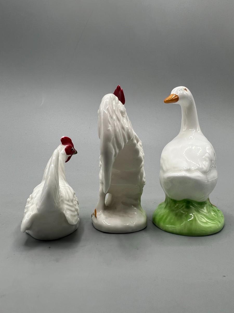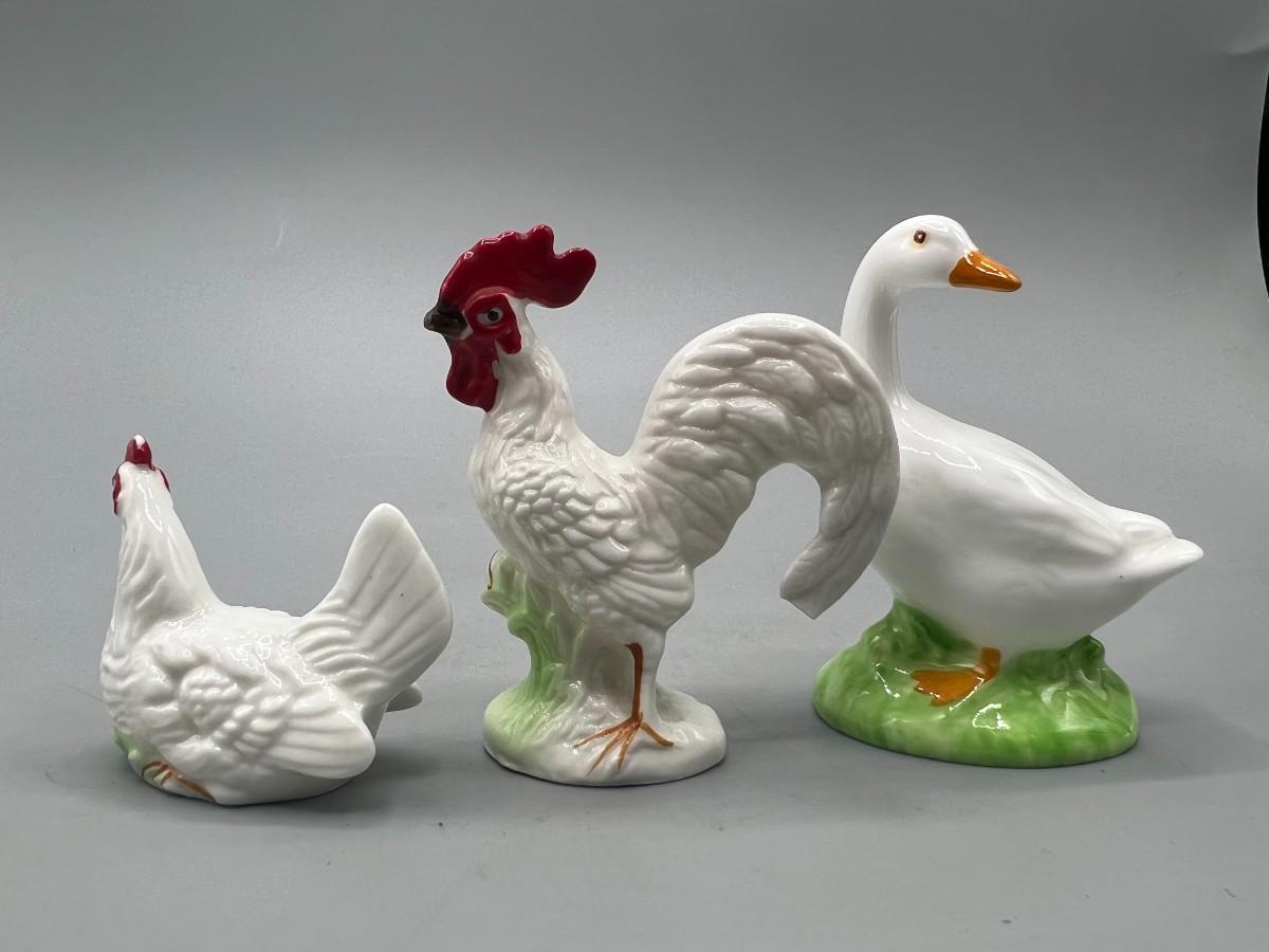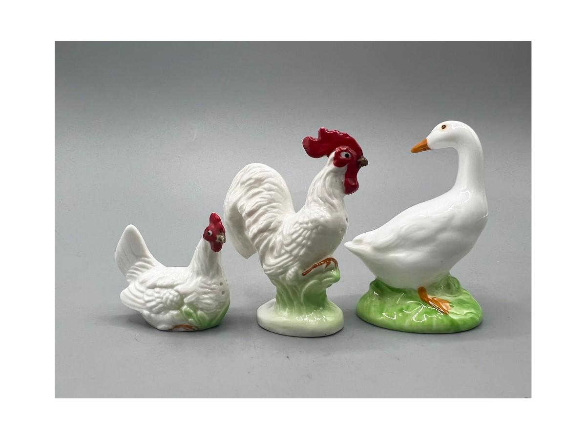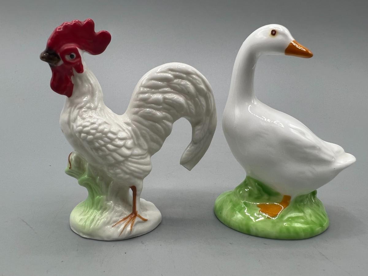 Retro Ceramic Rooster Hen Salt & Pepper Shakers and Duck Figurine