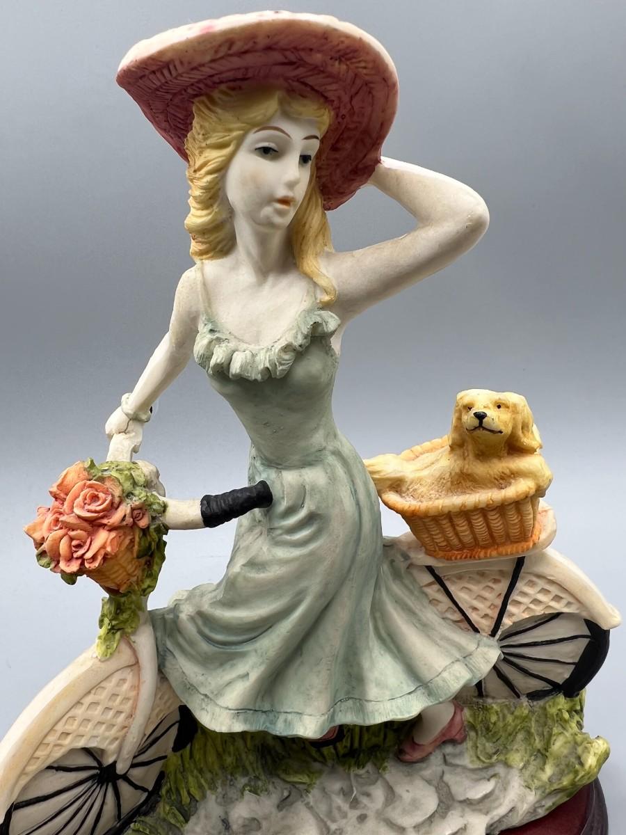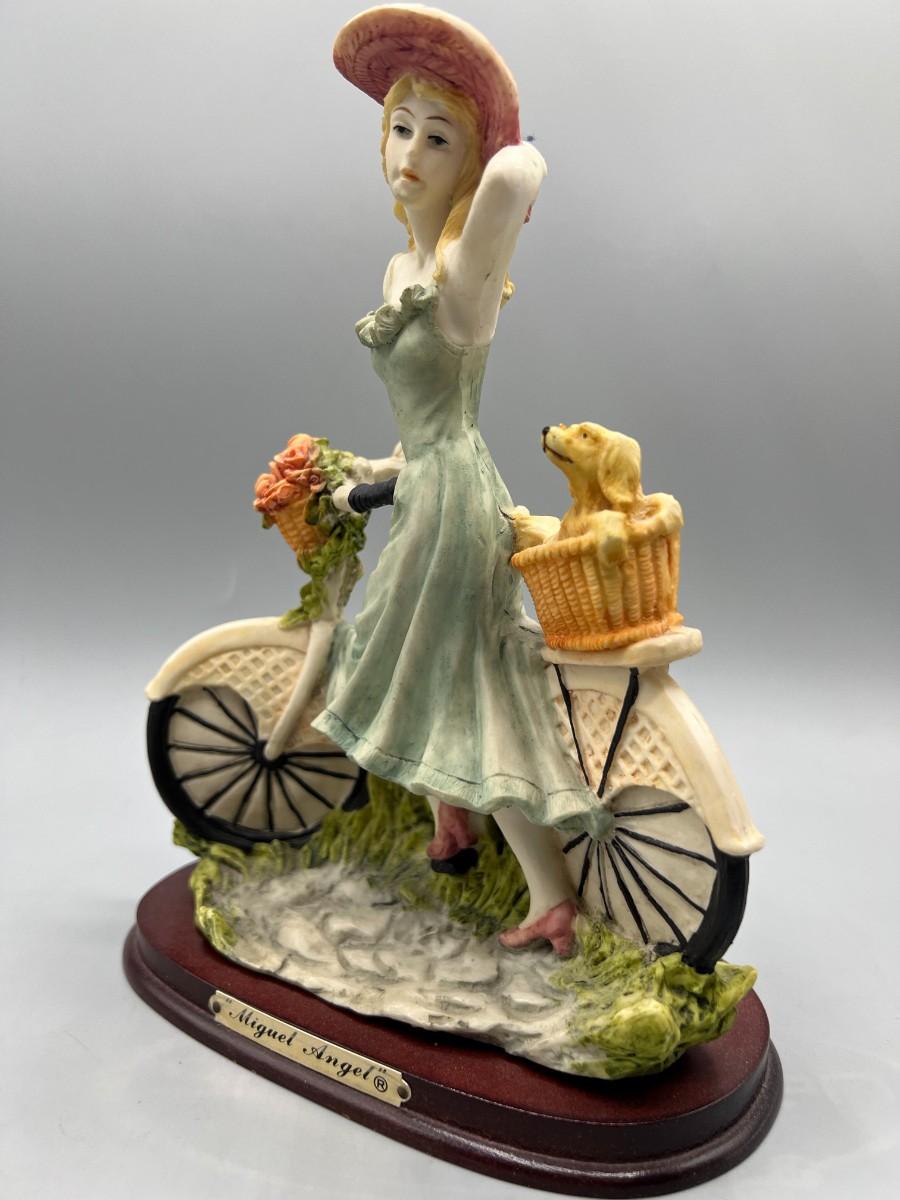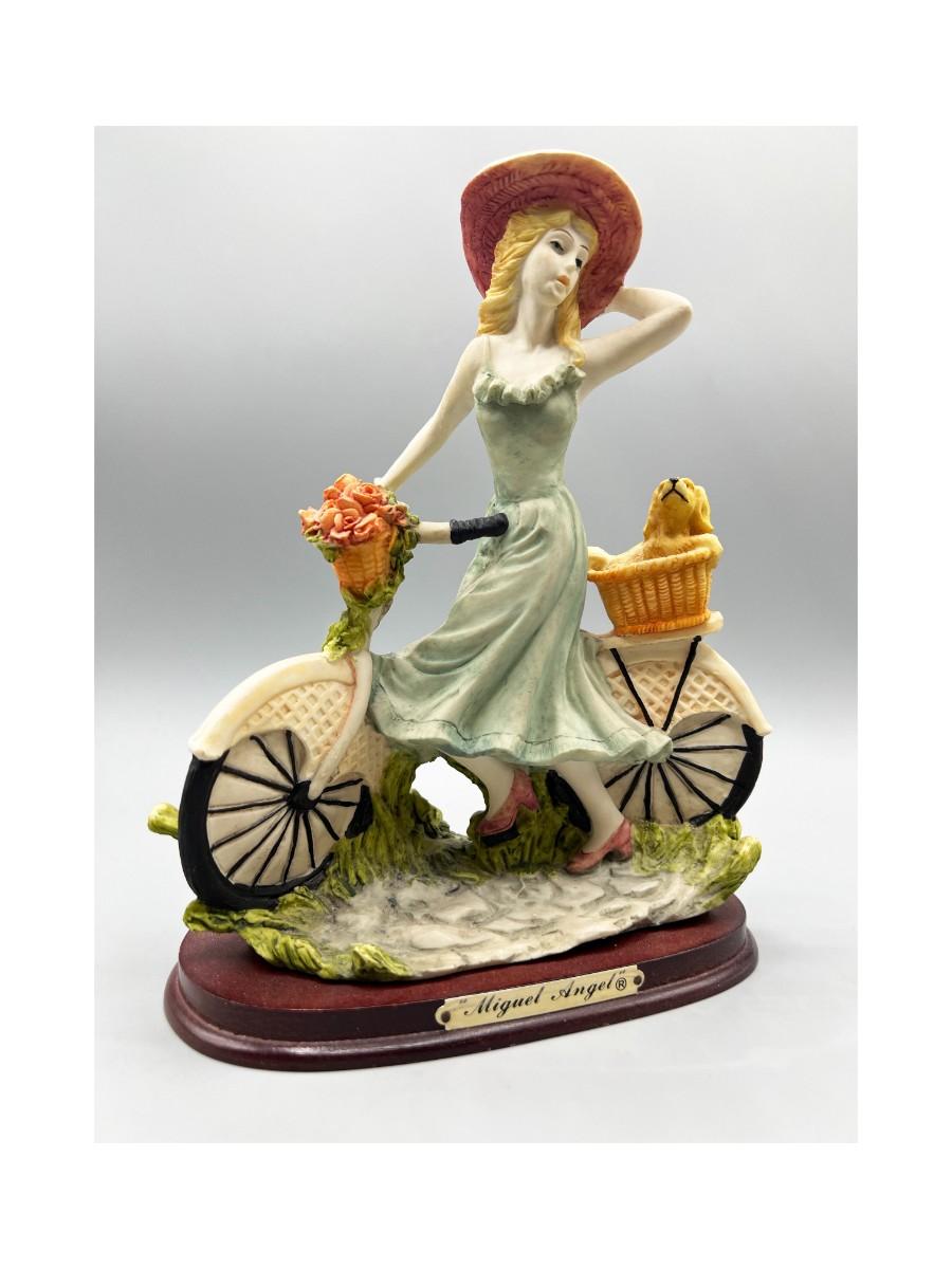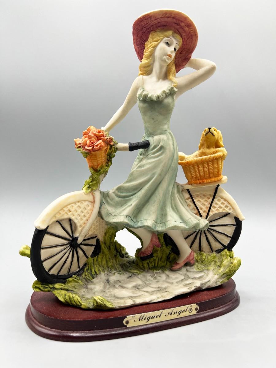 Retro Ceramic Woman on Bicycle Miguel Angel Ceramic Figurine