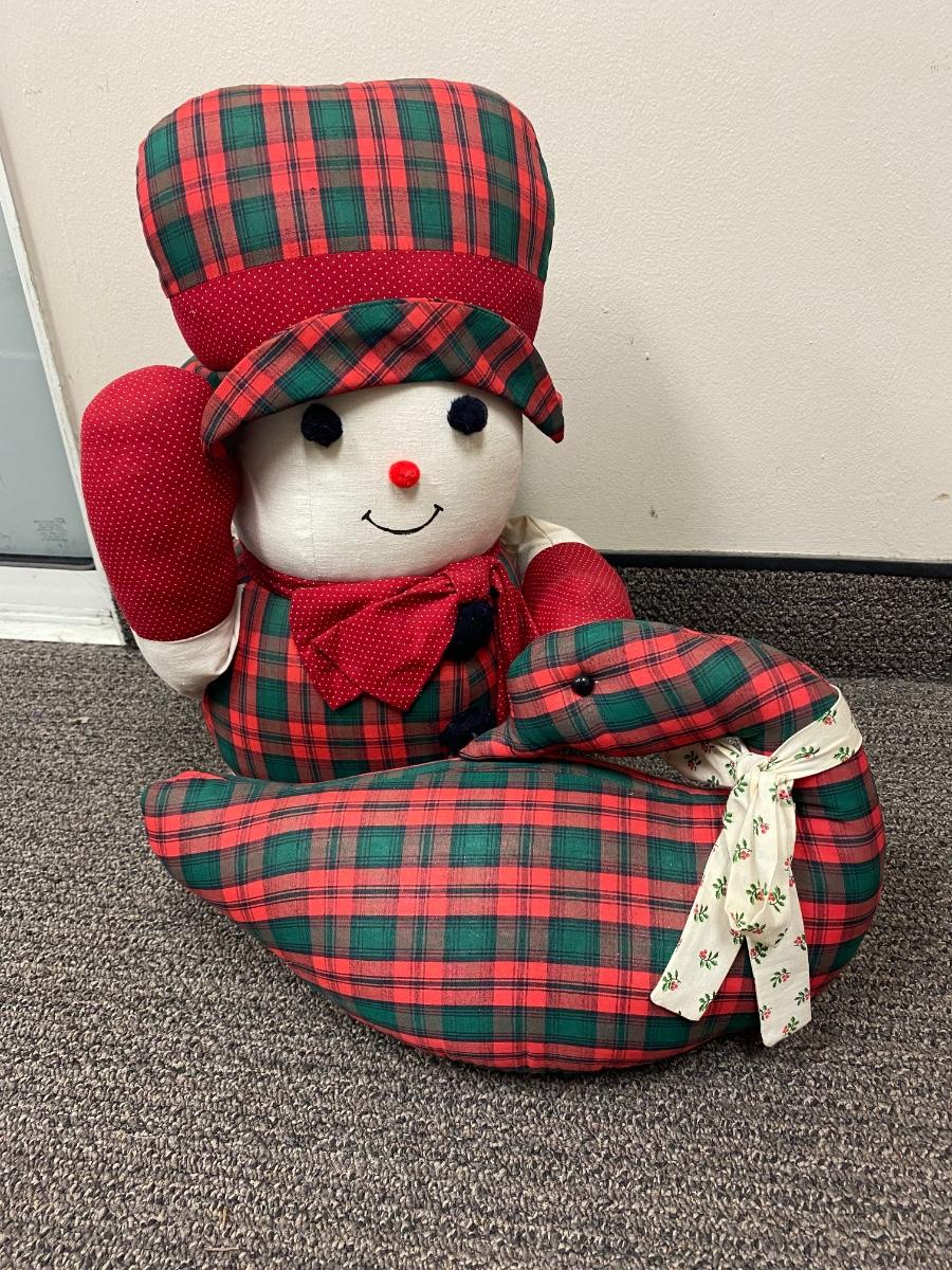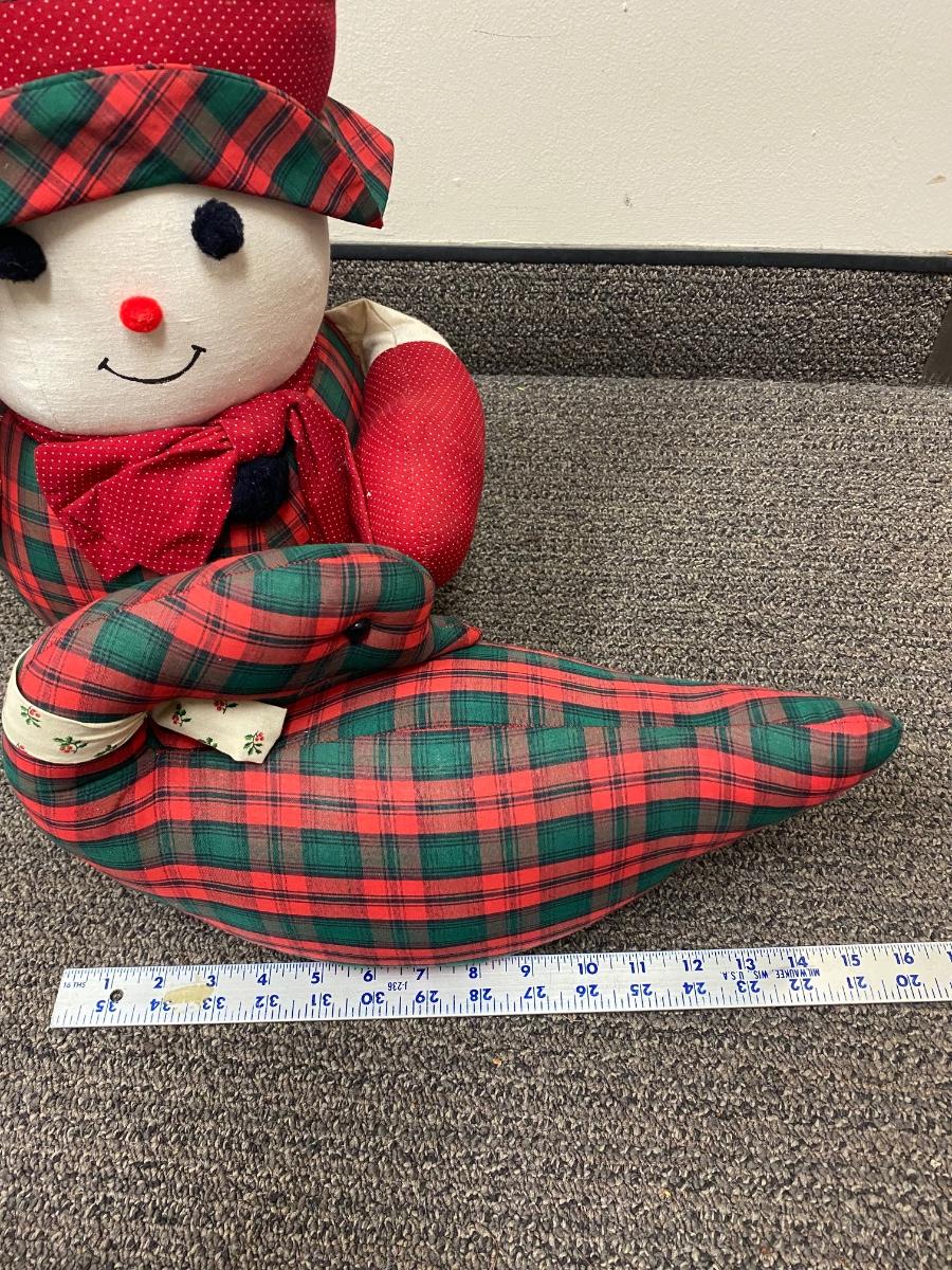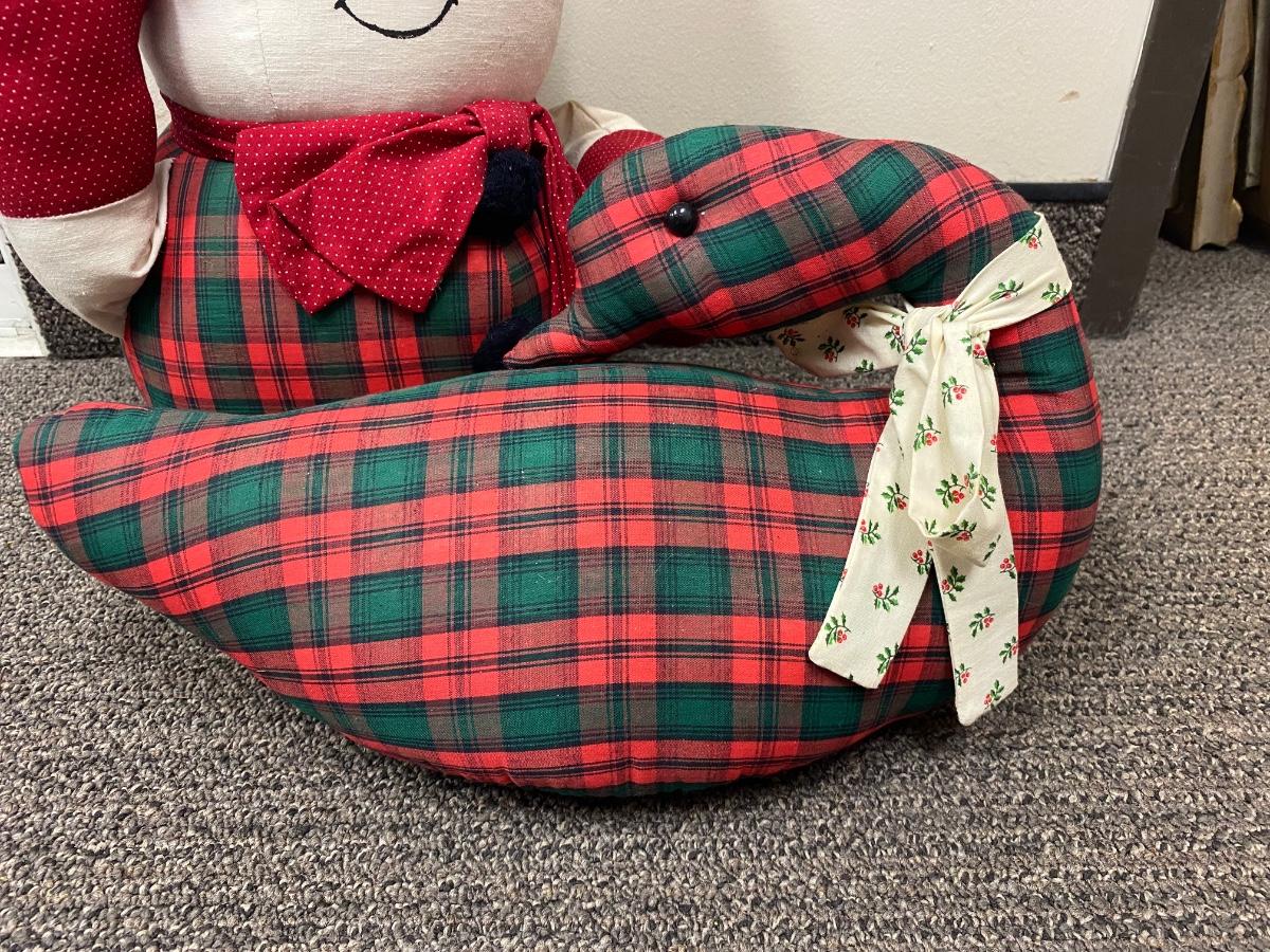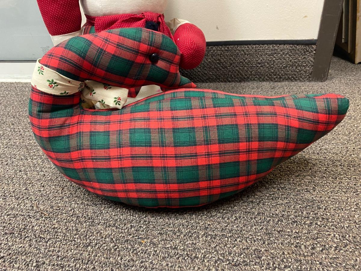 Pair of retro Christmas plush. Look to be handmade. Holiday plaid snowman and goose. In good condition, light discolor from age.