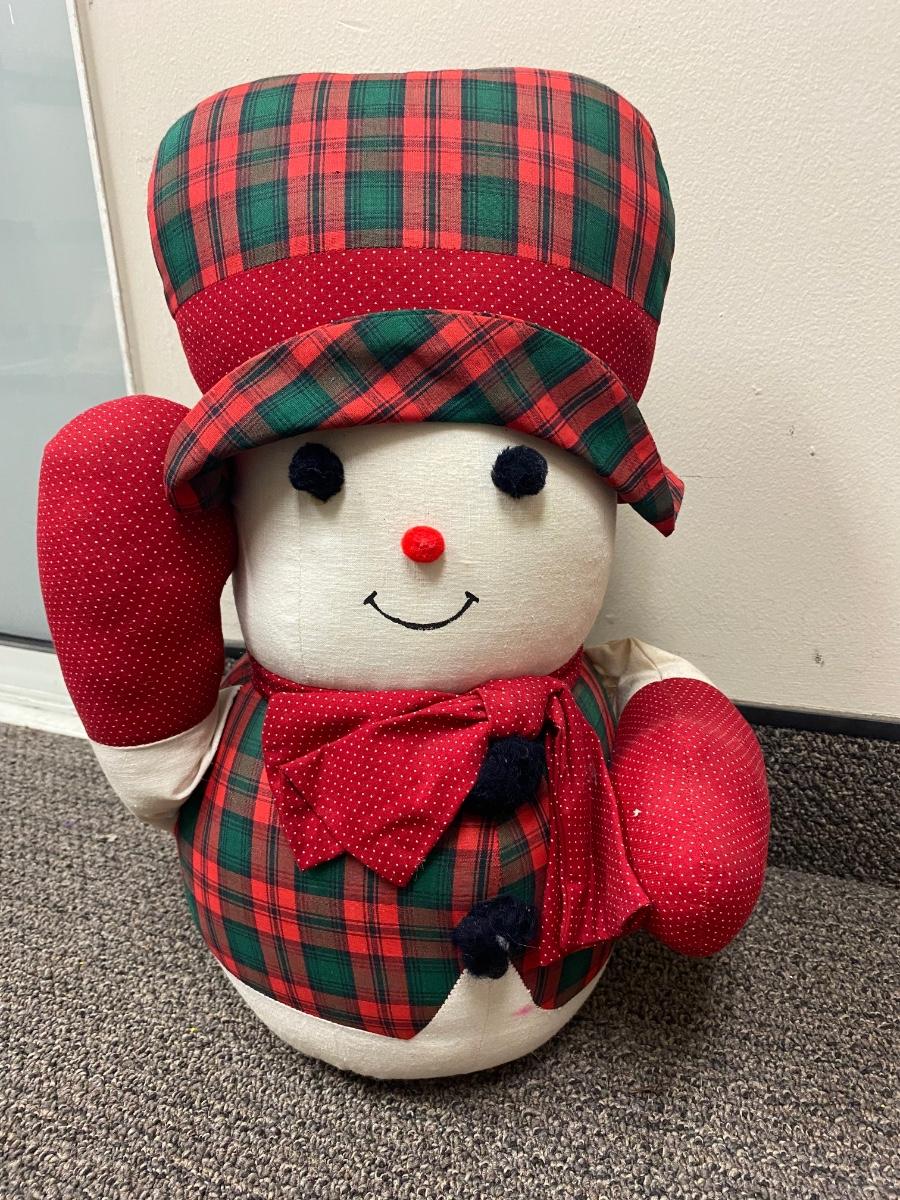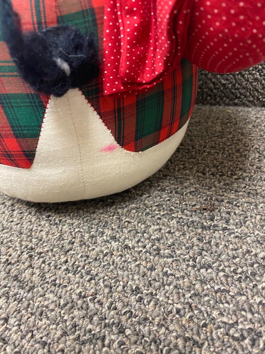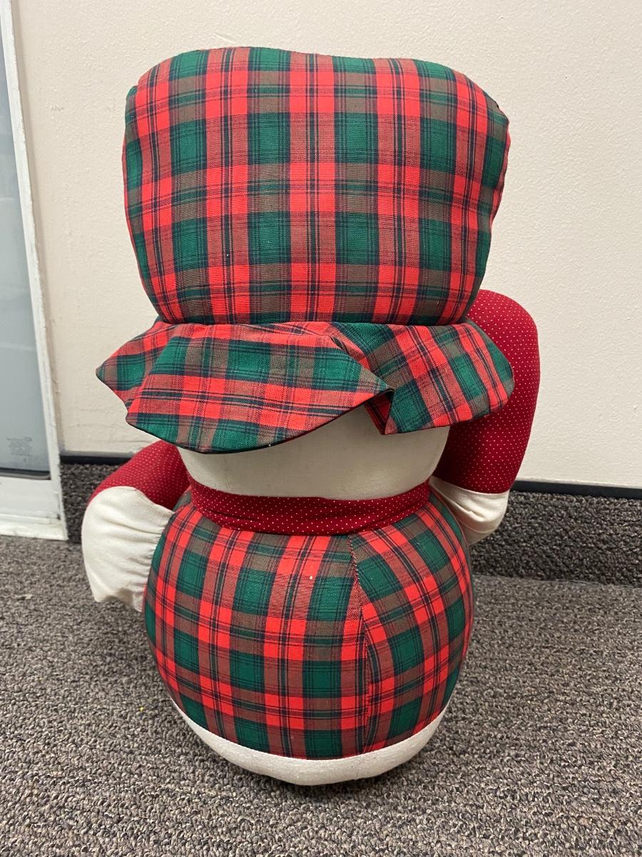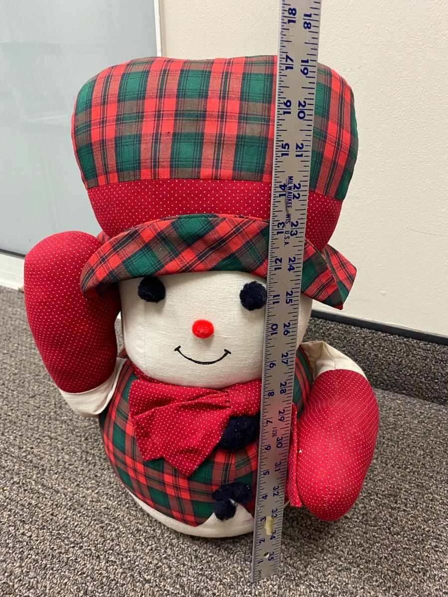Pair of retro Christmas plush. Look to be handmade. Holiday plaid snowman and goose. In good condition, light discolor from age.