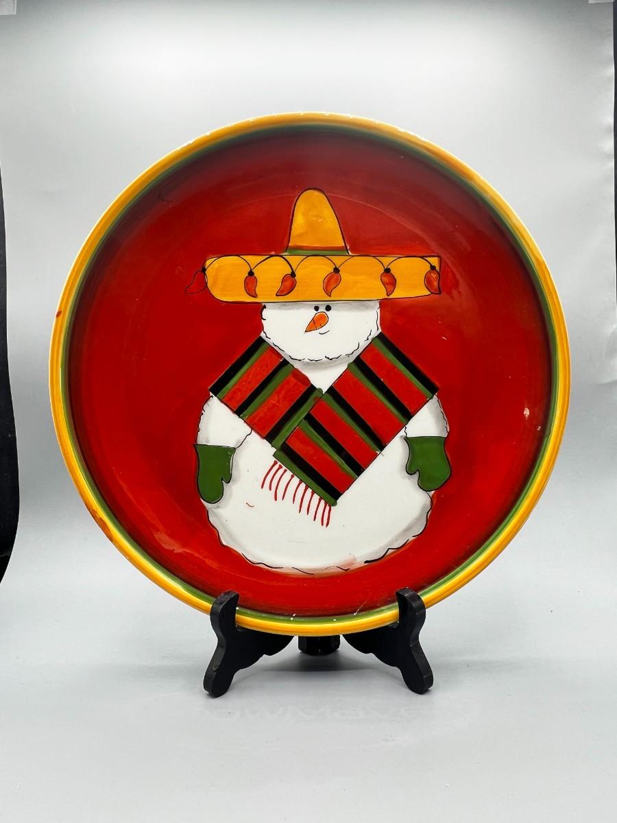 Retro Clay Art Hand Painted Dinner Jalapeno Snowman Festive Platter Plate